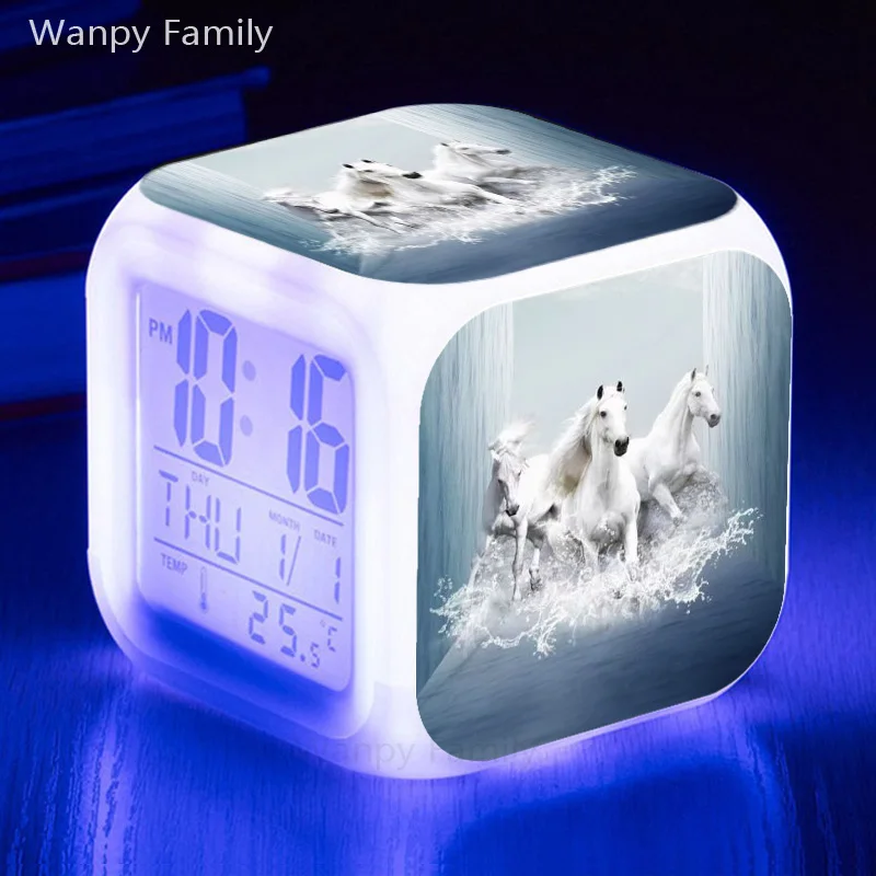 Будильник с изображением лошади, 7 цветов, светящиеся светодиодные ...