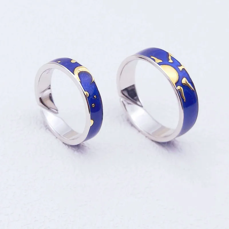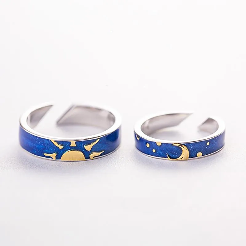 Модные открытые серебряные кольца с эпоксидной смолой синего цвета солнца Луны Ван Гога звездного цвета оптом