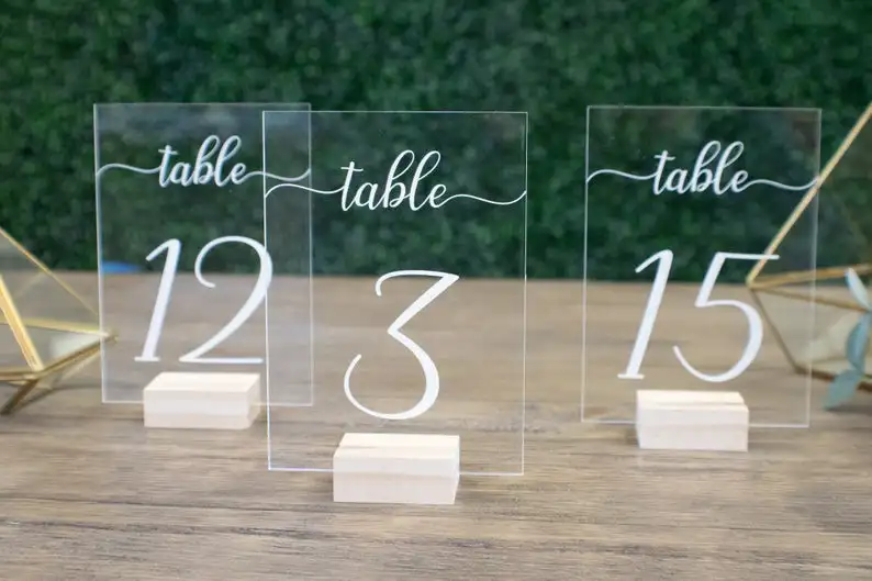 Акриловый стол с деревянной основой. Номера свадебных столов. Номера стола событий. Стол из плексигласа
