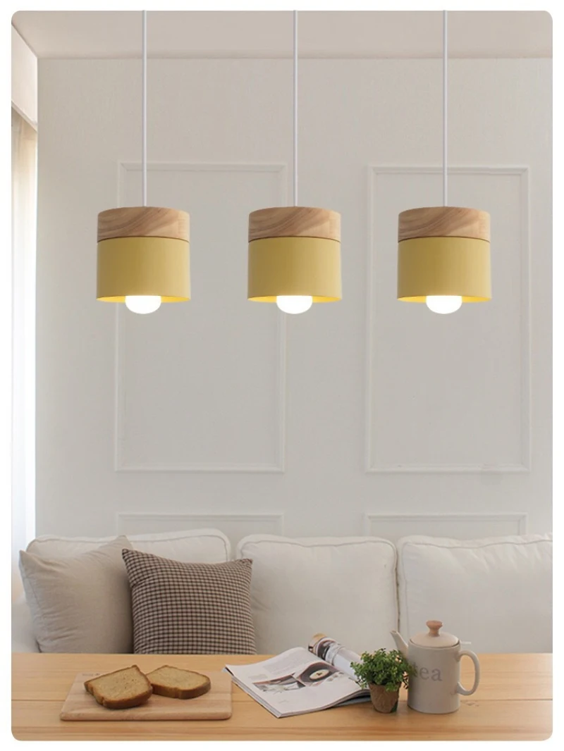 Nordic simplicity LED E27 подвесной светильник, современный подвесной светильник для макарон, для улучшения дома, подвесной светильник с железным и деревянным украшением