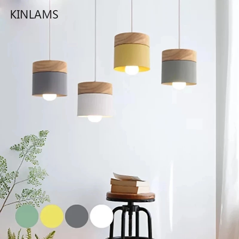 Современный подвесной светильник s Nordic провод для люстры, дерево, железо, красочный светодиодный подвесной светильник, ресторан, кофе, спальня, E27, внутренний свет