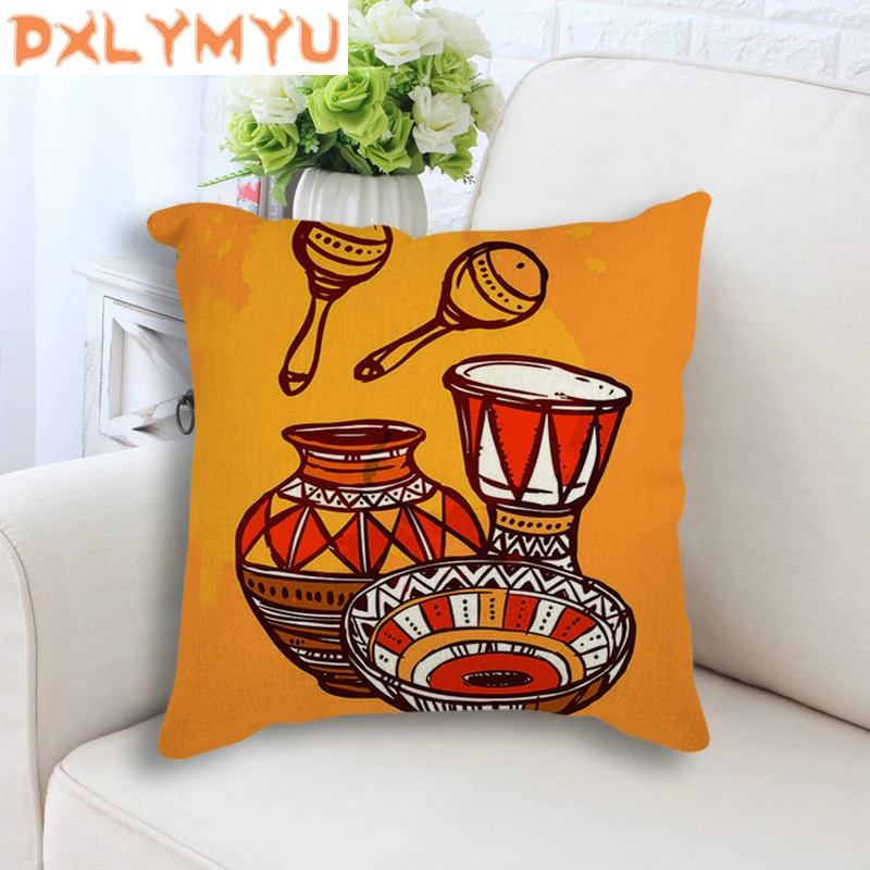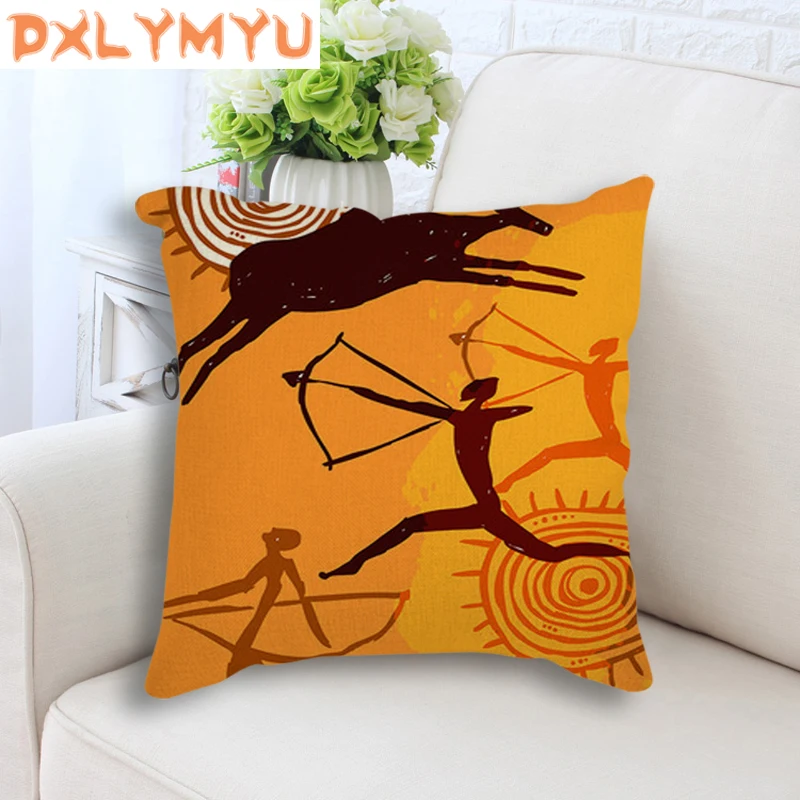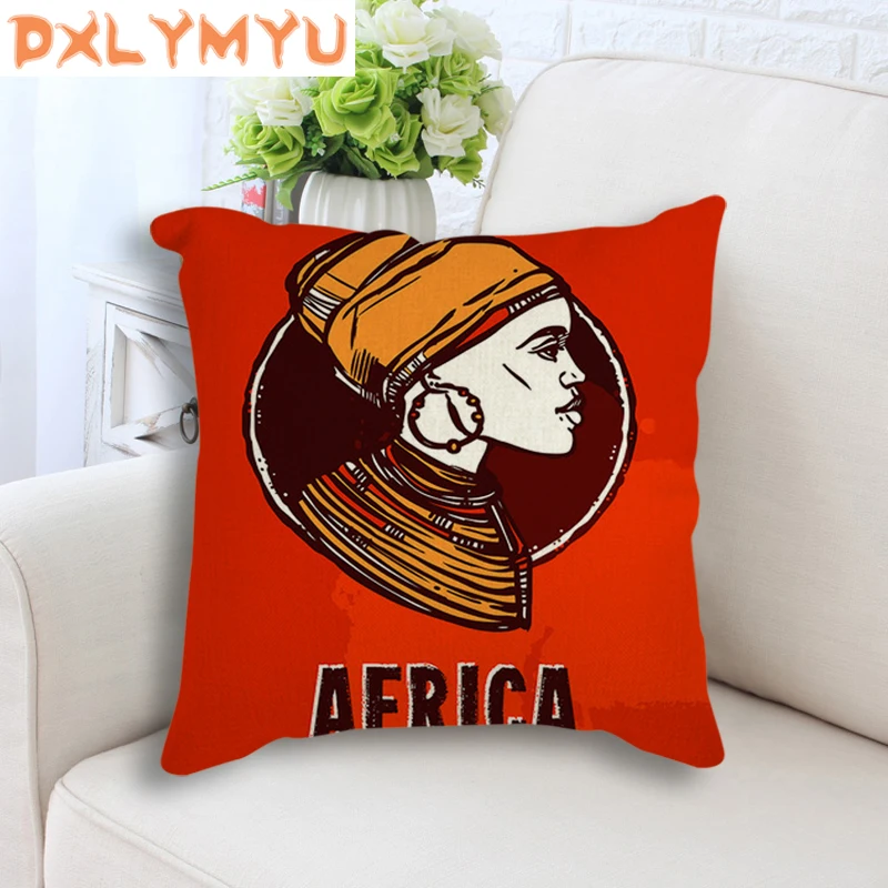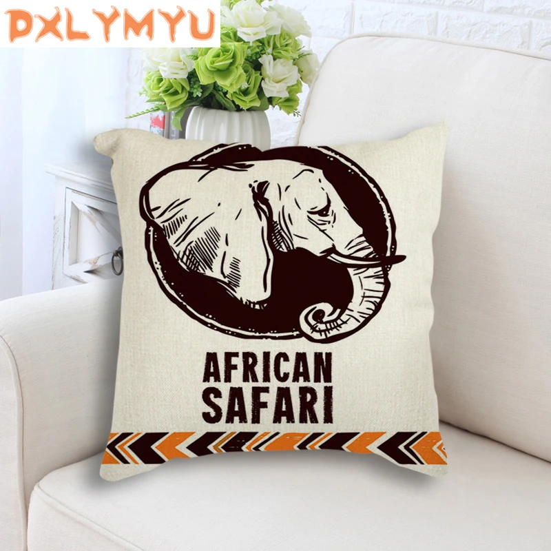 Мультяшная подушка на сиденье, африканская женская маска, фотографии слона, напечатанная декоративная подушка, лен, подушка для дивана, украшение