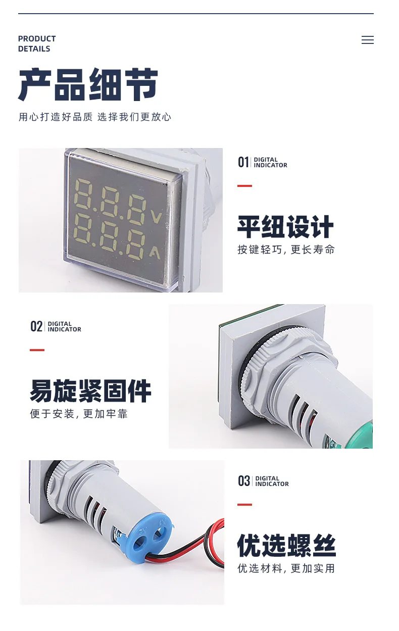 Вольтметр цифровой со светодиодный дисплеем, 22 мм, Круглый квадрат...