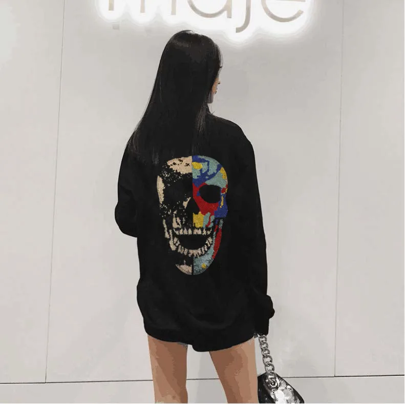 Новые брендовые Модные осенние мужские свитеры Стразы черепа со стр...