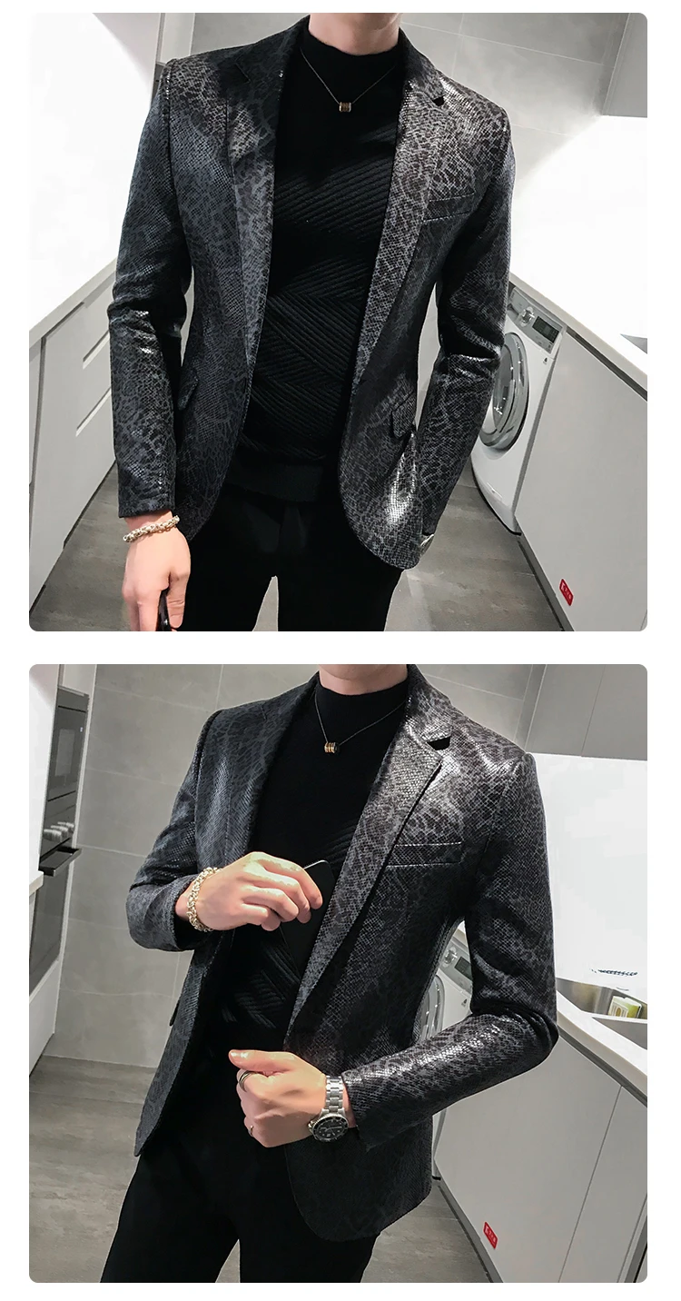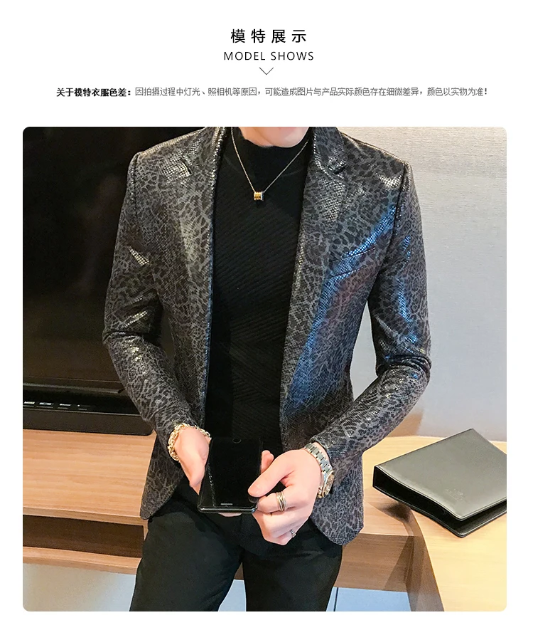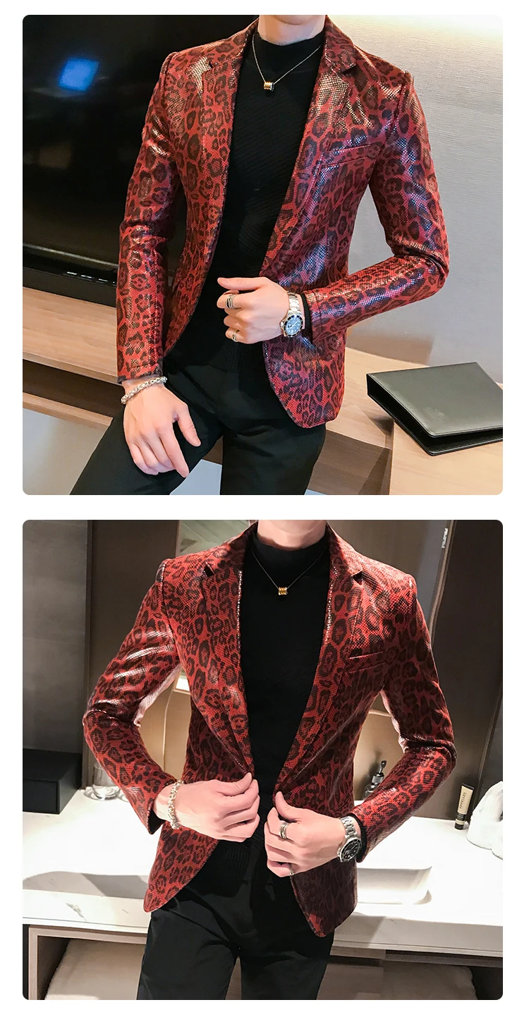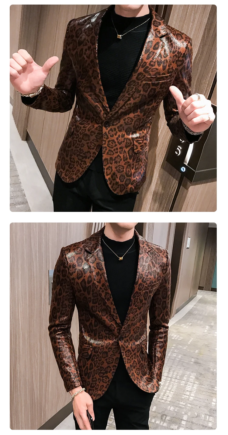 Кожаная куртка, сценические костюмы для певцов, Свободное пальто Blaser Homens Terno Masculino, осенний мужской блейзер с леопардовым принтом, кожаный костюм