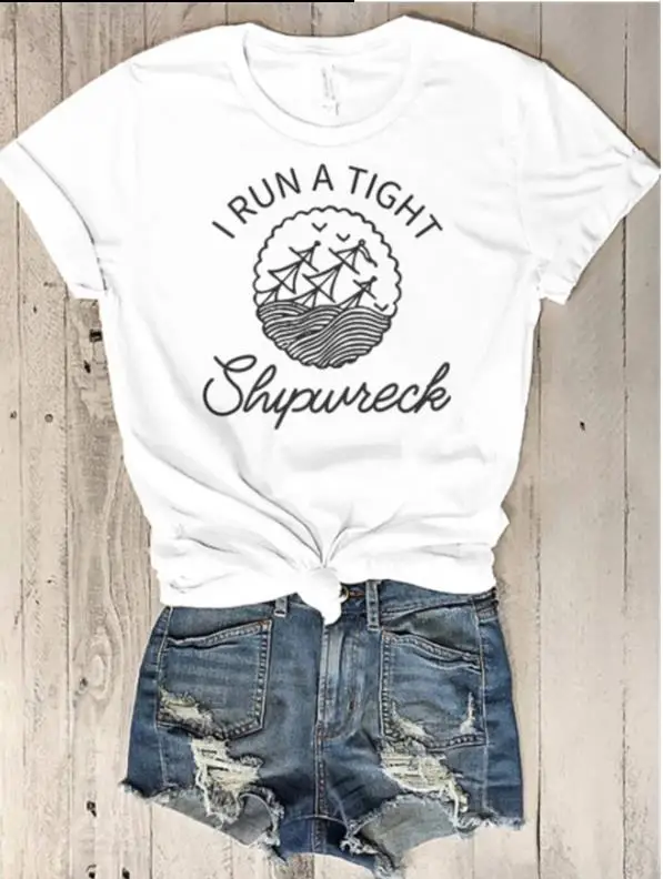 Футболка с рисунком лодки I RUN A TIGHT Shipwreck, одежда в летнем стиле, повседневные хлопковые футболки tumblr