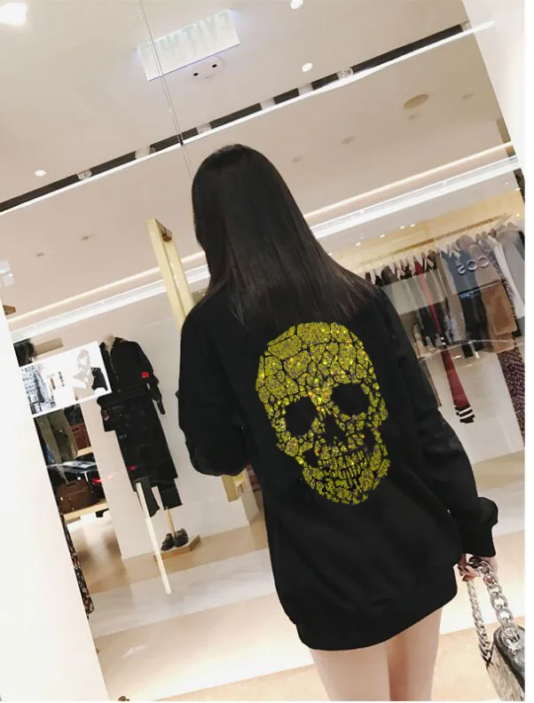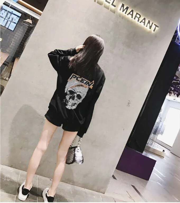 Женские толстовки с бриллиантами, повседневные толстовки в стиле панк, топы в европейском стиле, корейская мода 2020