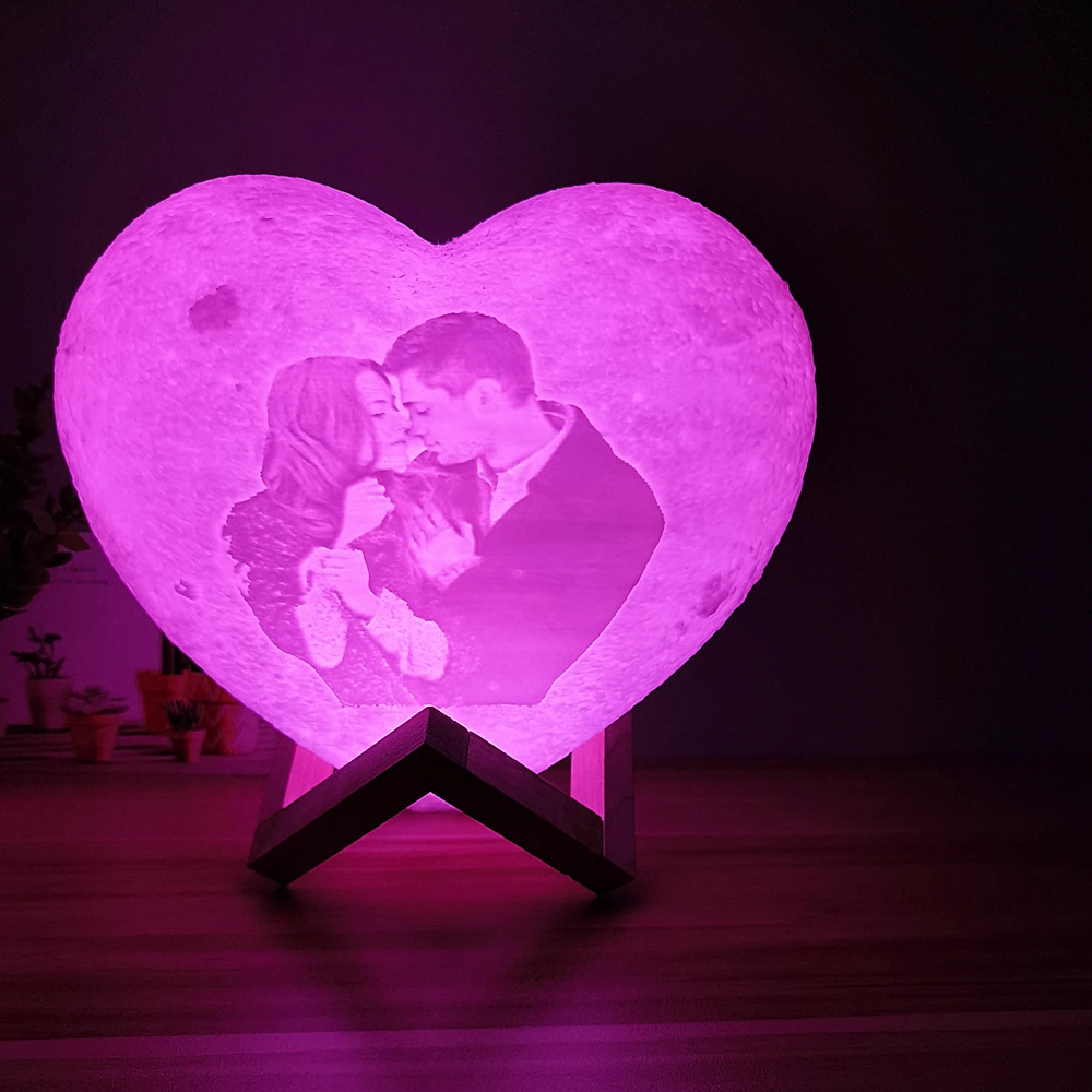 Индивидуальная Лунная лампа с фотографией и текстом, 3D ночсветильник в форме сердца с принтом Луны, персонализированные подарки на день рождения, День матери