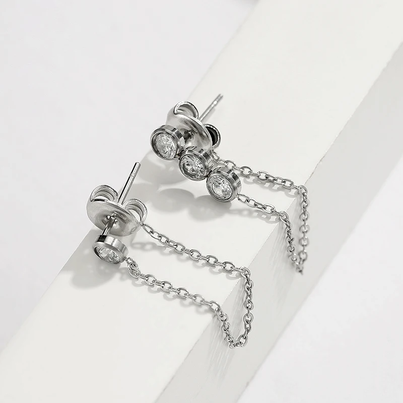 Женские асимметричные серьги JUJIE, корейские серьги из нержавеющей стали с кристаллами, классические серьги-цепочки, ювелирные изделия, 2020