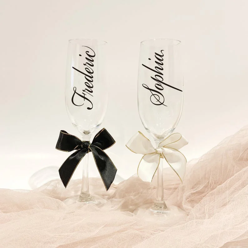Персонализированные Имя DIY Свадебная вечеринка стеклянная Наклейка Виниловая наклейка для классических очков шампанского-Свадебные названия доступны на день рождения
