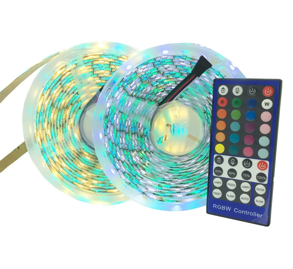 Светодиодная ленсветильник RGB RGBW, 5 м, 5050, 12 В постоянного тока, гибкая неоновая лента RGB + ИК-контроллер с 40 кнопками + адаптер питания RGBW RGBWW
