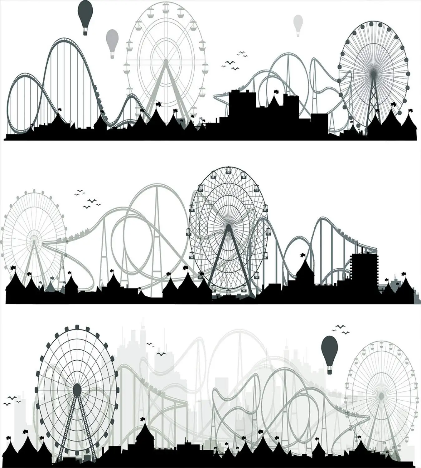 Комплект постельного белья из 3 предметов, монохромный, с изображением колеса обозрения, для карнавала, цвет темно-Ночной синий, слоновая кость и бледно-миндальный зеленый