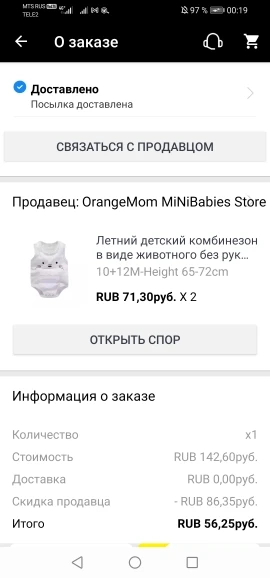 Бодик супер! Мягкий, приятный. До Волгограда за 20 дней. Полностью отслеживался. Размер на 74