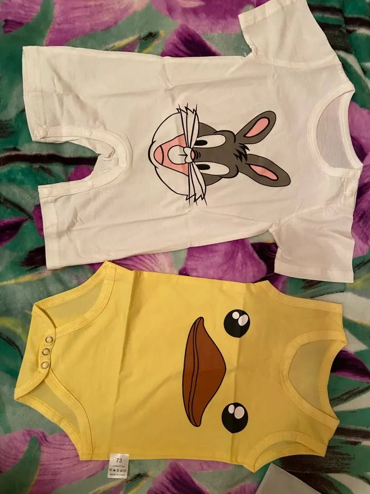 доставка в срок. товар отслеживался на всем пути. боди как на картинке. кнопки пластиковые 2 штуки внизу. милая картинка. брала сразу 2 боди. немного отличаются по длине между собой, но мне не критично. товаром довольна, спасибо.