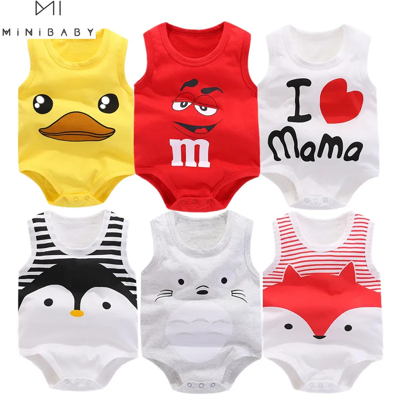 Летний Боди без рукавов для новорожденных мальчиков, хлопковый Забавный купальник, костюм для маленьких девочек, короткий домашний костюм для маленьких детей, Детский комбинезон в виде животного