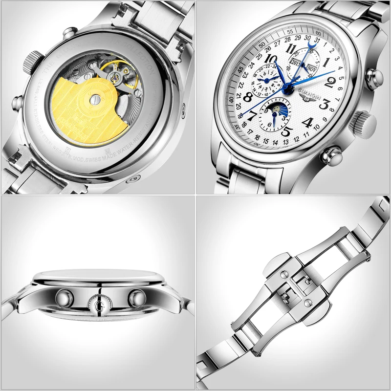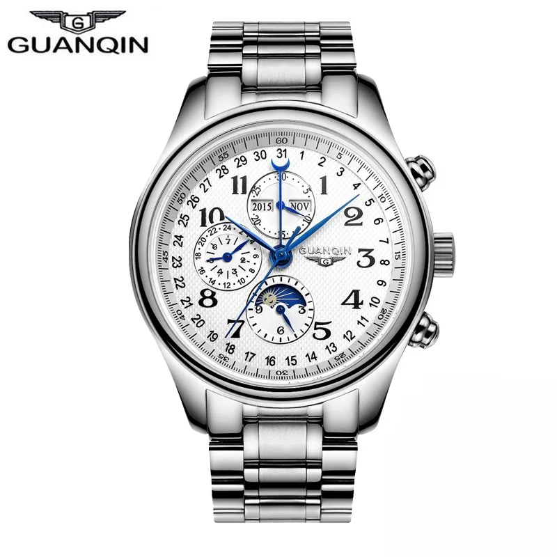 Часы наручные GUANQIN GQ20022 Мужские механические, брендовые Роскошные водонепроницаемые автоматические из нержавеющей стали 316L с сапфировым стеклом и кожаным ремешком