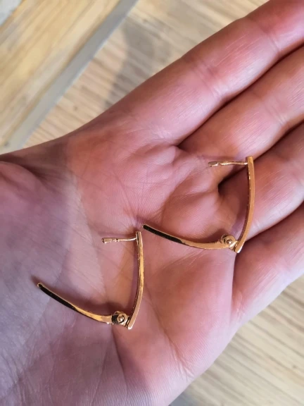 Серьги очень красивые. Похожи на золото. Застежка держит, но после каждого открывания, надо погибать душку, которая вставляется в ухо. Металл очень мягкий. Посмотрим на сколько хватит. На фото рядом с золотыми серьгами. Рекомендую.