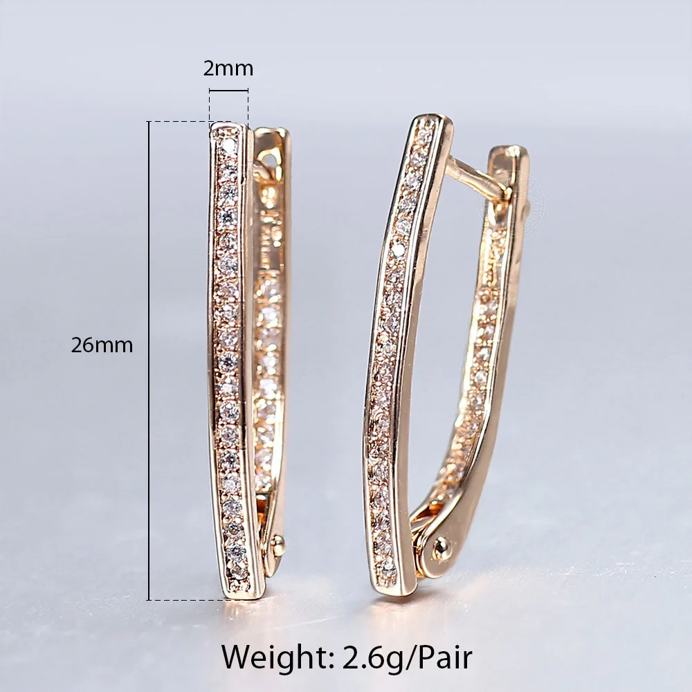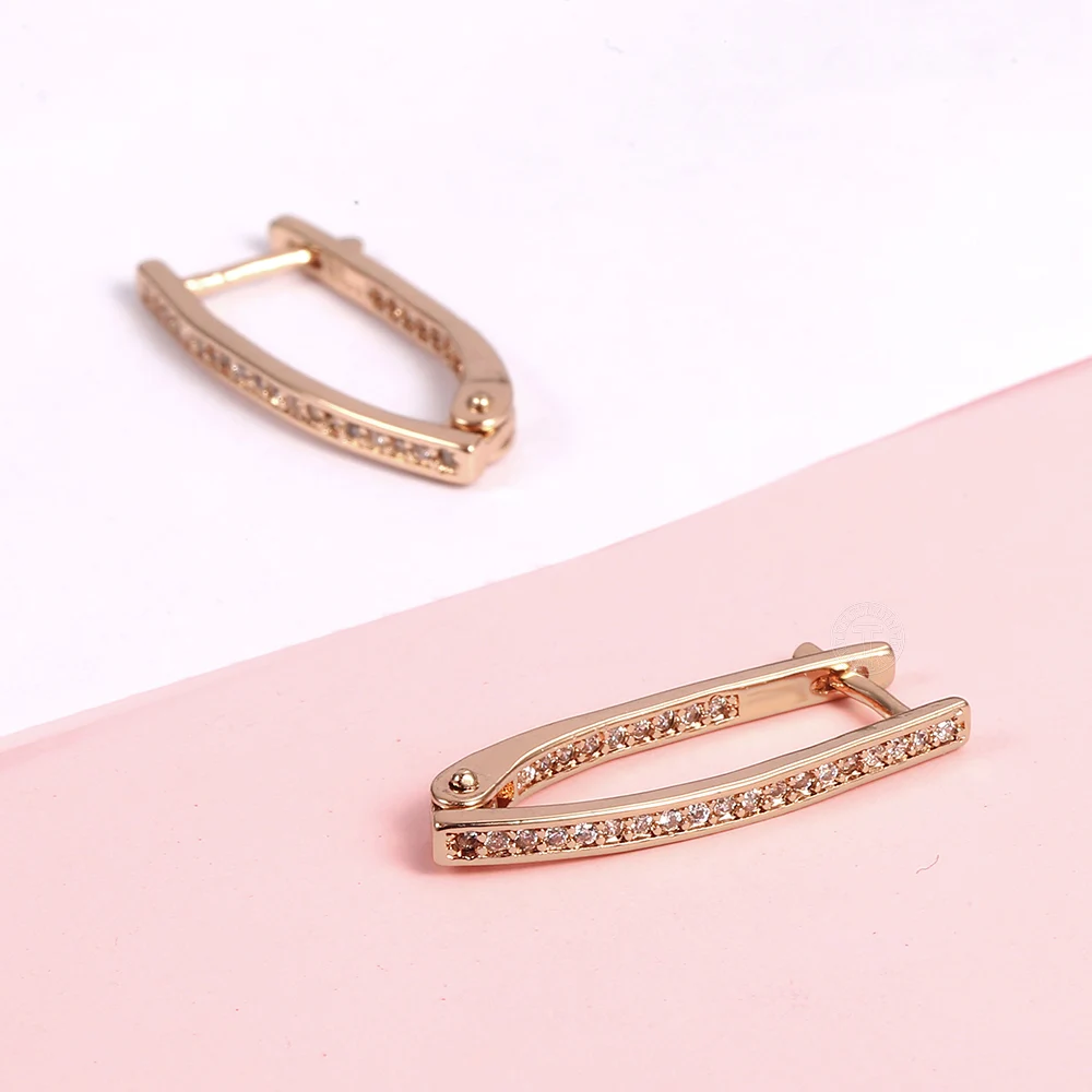 Серьги-кольца женские V-образные, из розового золота 585 пробы, с белым кубическим цирконием, GE296, подарки на день рождения серьги