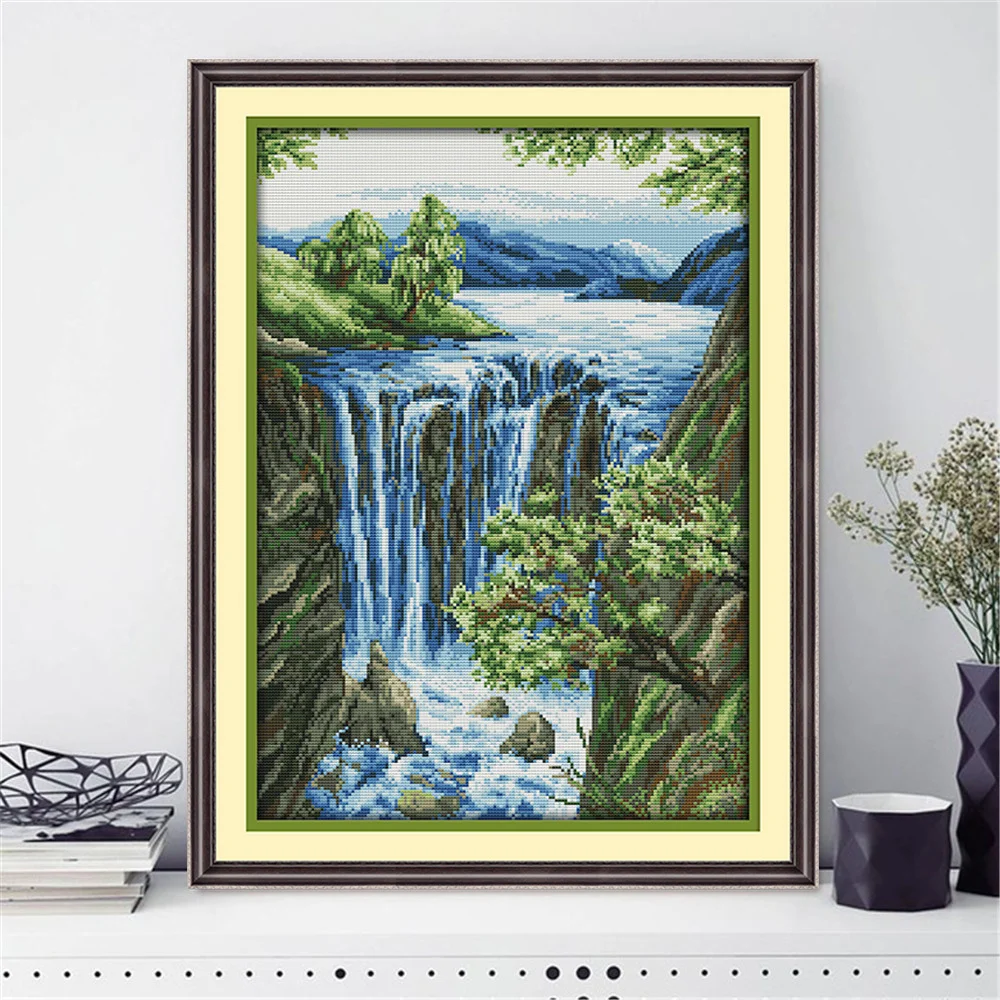 HUACAN вышивка крестиком водопад декорации рукоделие Наборы белый холст DIY подарок домашний декор 11CT 14CT
