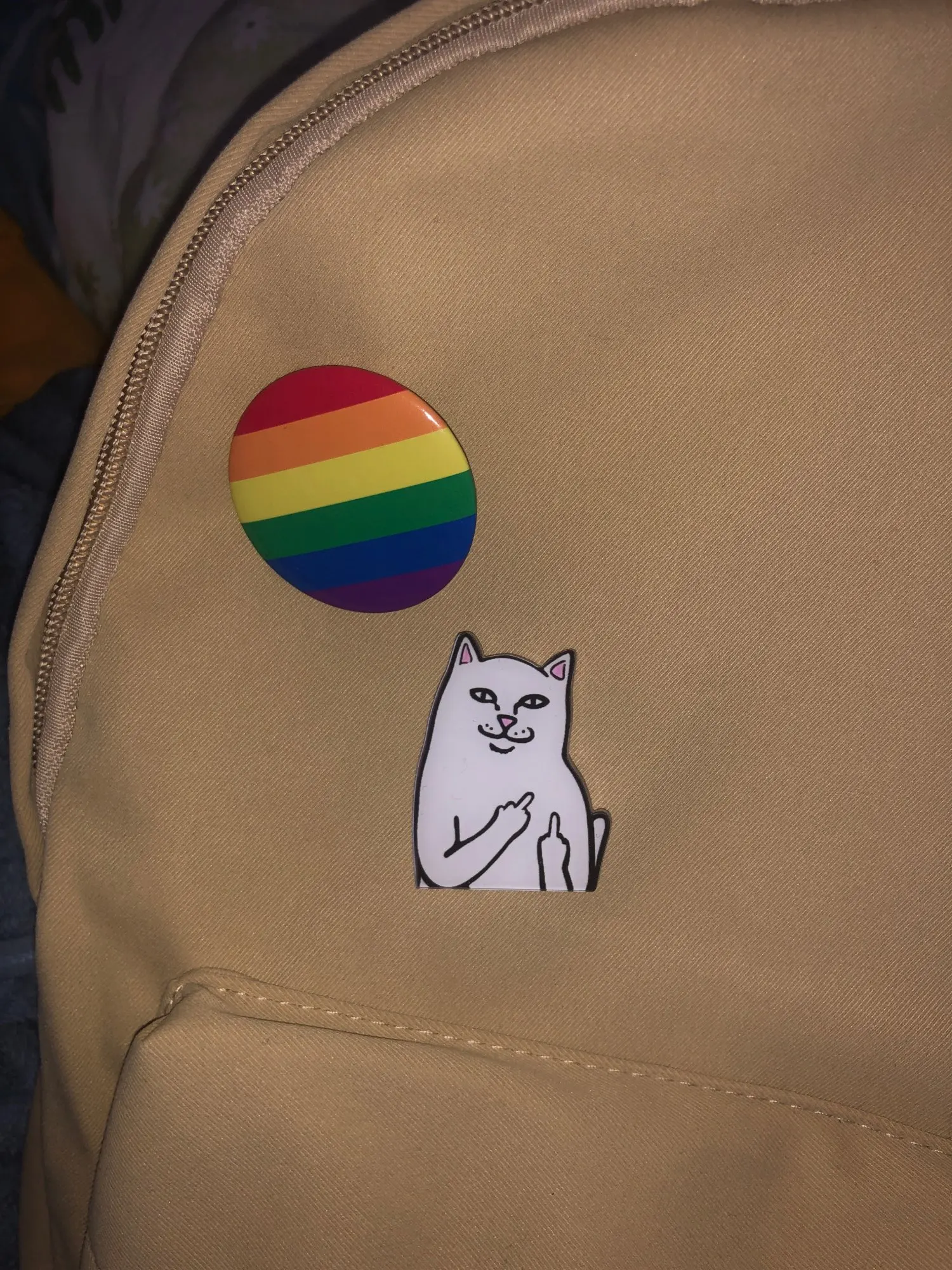 все прекрасно. очень хороший значок. на рюкзаке держится крепко.