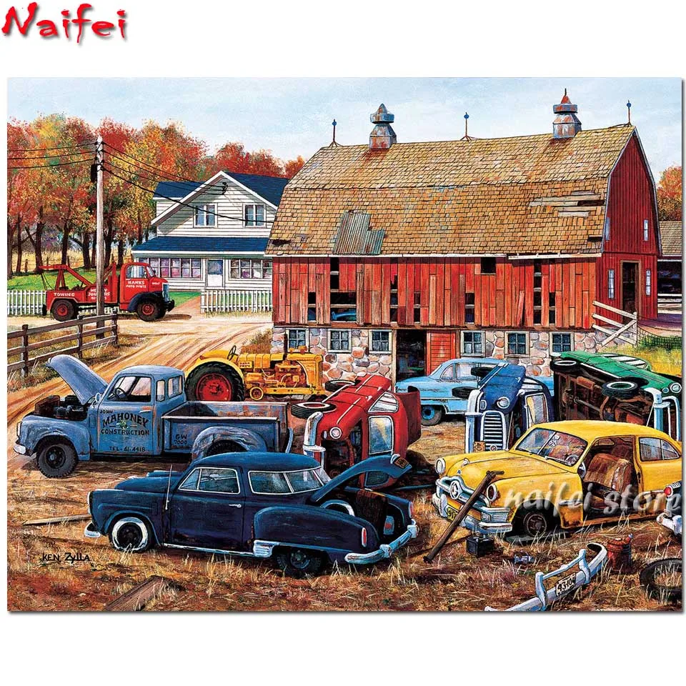 5D алмазная вышивка фермы пейзаж Старый Автомобиль Алмазная картина полная круглая дрель продажа ностальгические/Ретро картины ручной работы домашний декор