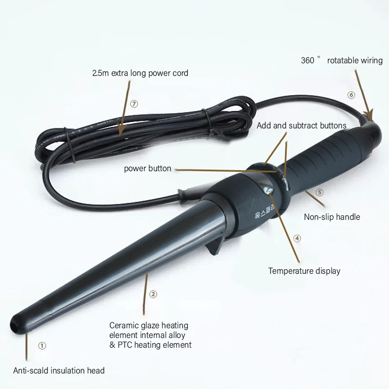 Одноконусные щипцы для завивки волос с ЖК-дисплеем, электрическая в...