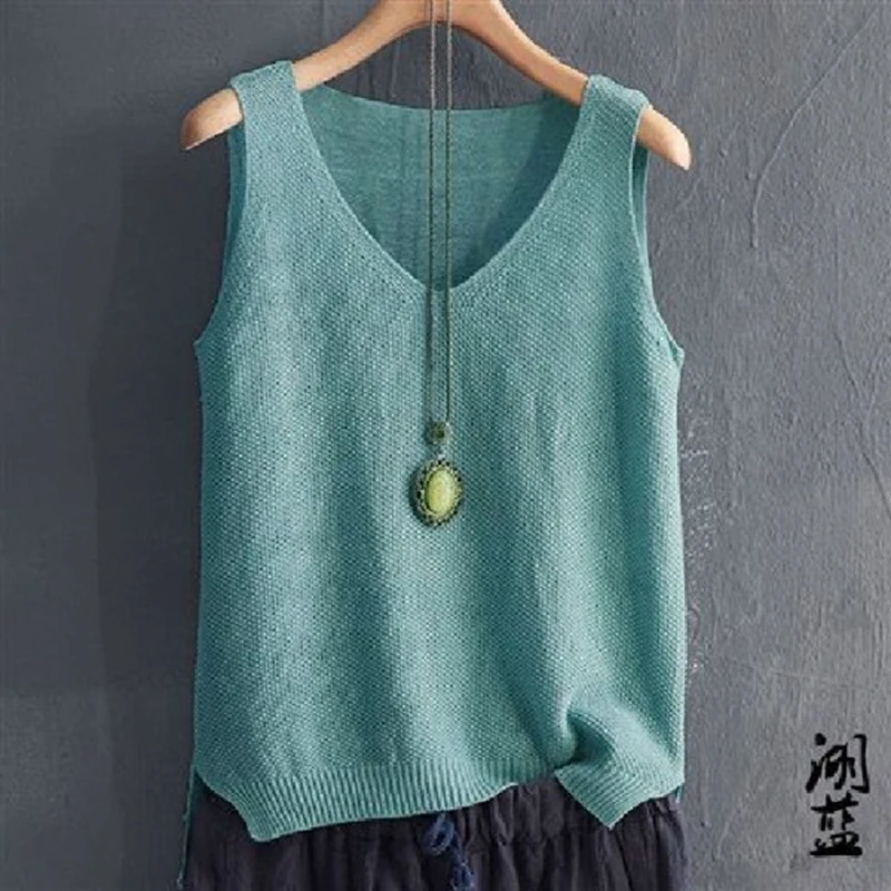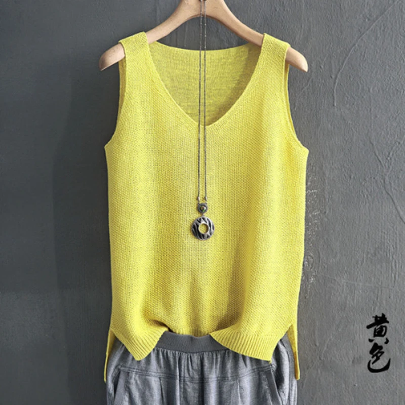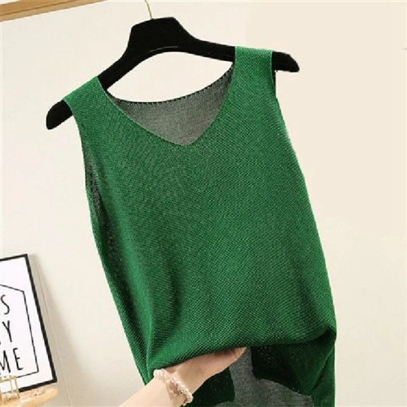 Майка женская вязаная с круглым вырезом, однотонный Модный повседневный Тонкий Топ без рукавов, трикотажная рубашка, жилет, 2020