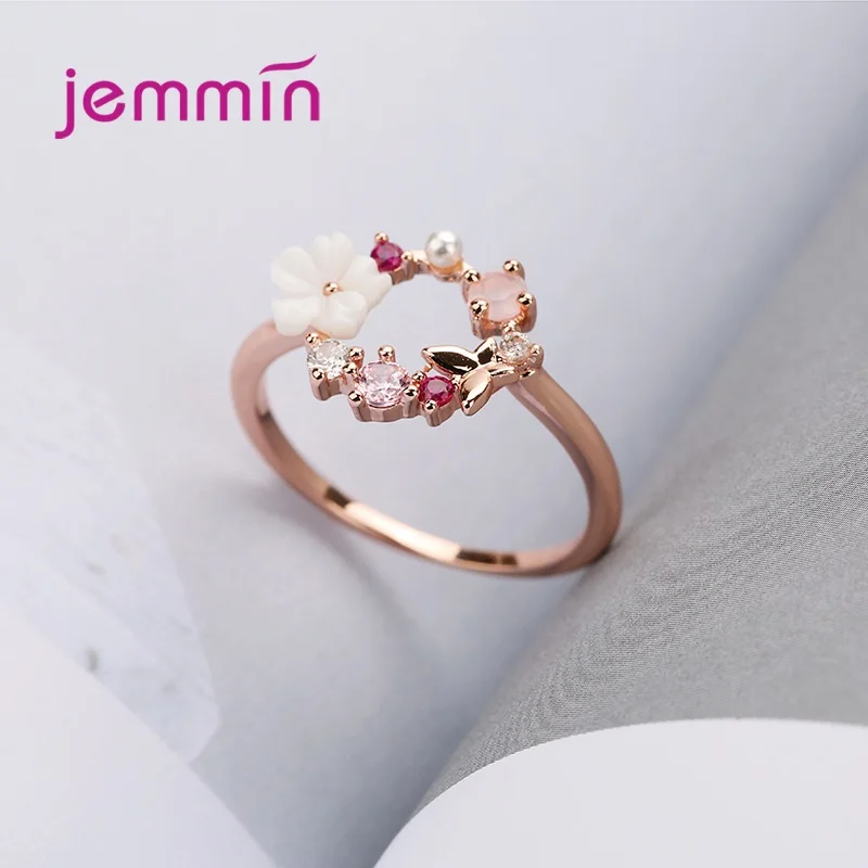 Кольца женские из серебра 925 пробы, розовое золото, в форме цветка, украшения на день рождения, свадьбу