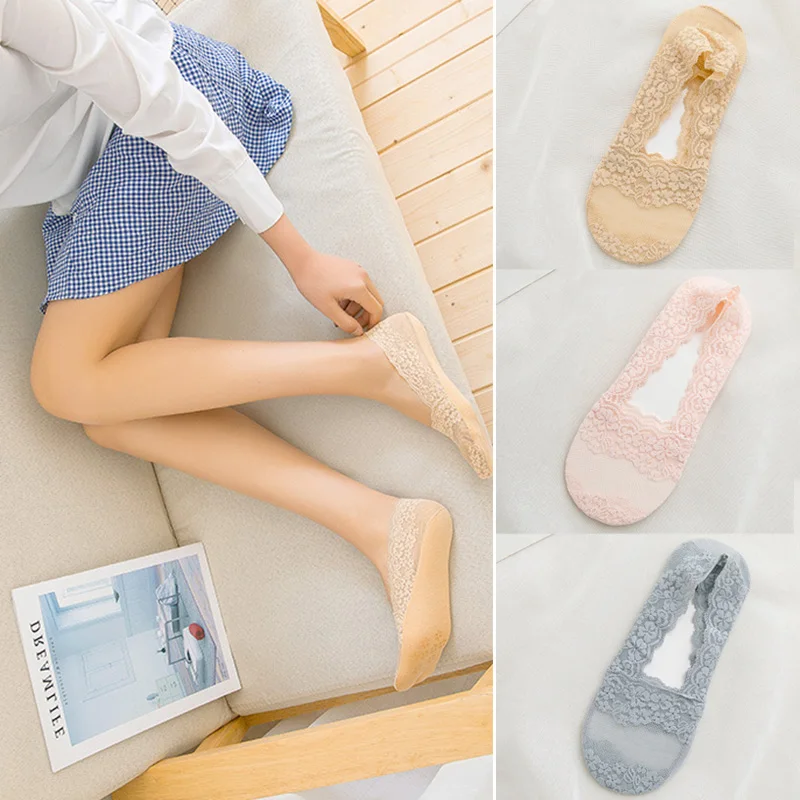 Новые прозрачные короткие кружевные носки, женские мягкие низкие силиконовые Нескользящие женские невидимые носки, носки-тапочки с вырезами