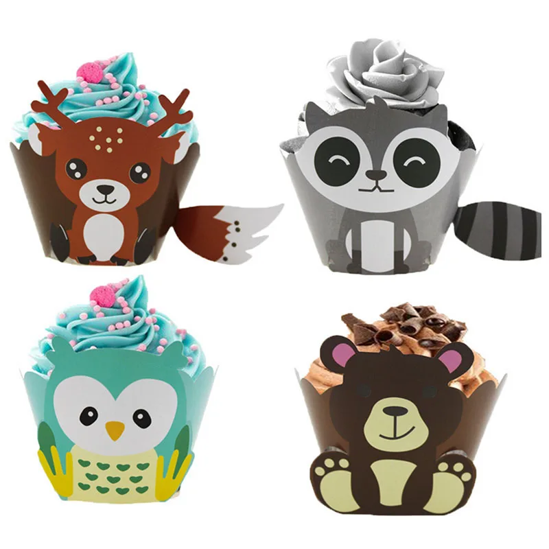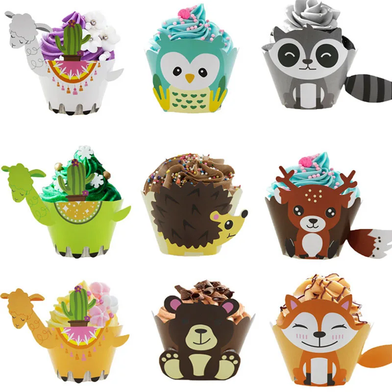 Мини бумажные обертки для кексов животных дизайн с кексом границы торт фигурки жениха и невесты; Джунгли на день рождения украшения для торта для вечеринки