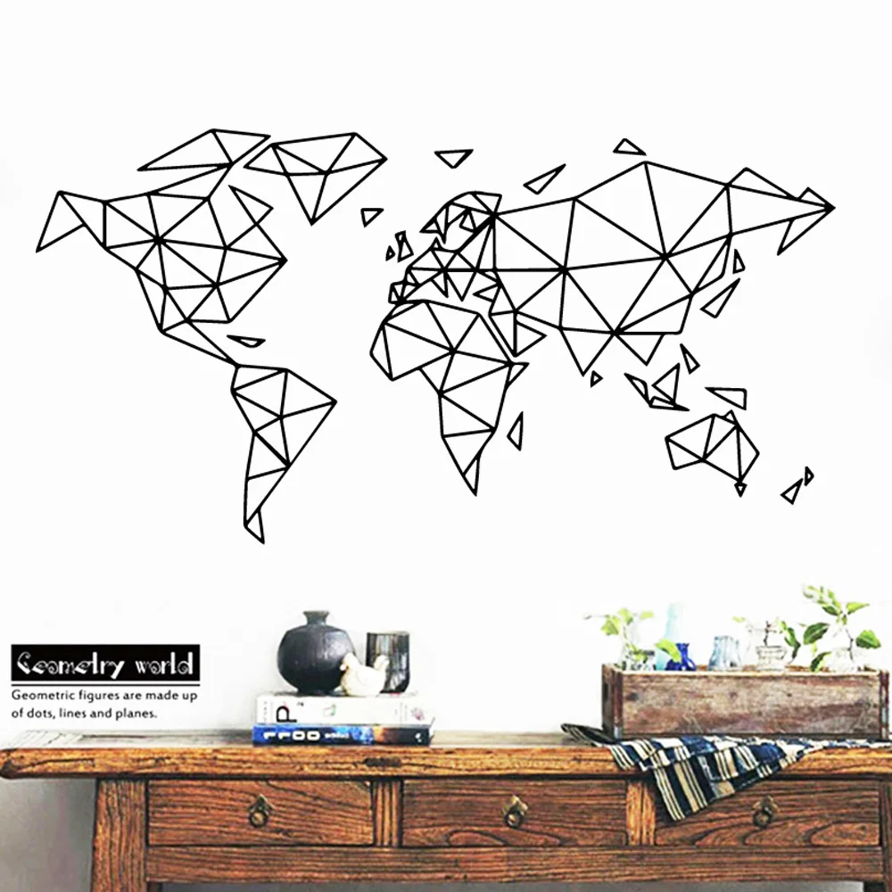 Художественные геометрические настенные Стикеры с изображением карты мира, украшение дома, офиса, комнаты, наклейка для спальни, гостиной, Декор, настенные наклейки на обои