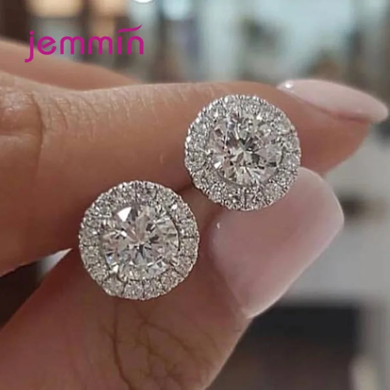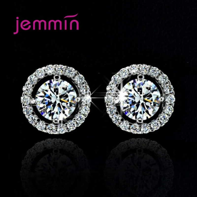 Новое поступление из натуральной 925 стерлингового серебра серьги-гвоздики для женщин круглый Форма сверкающие Кристальные серьги гвоздики с камнем ювелирные аксессуары