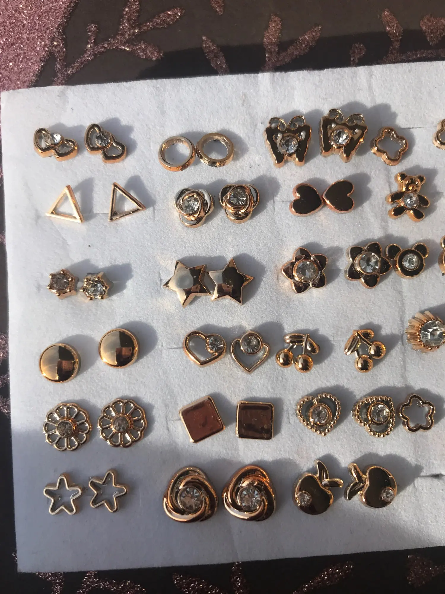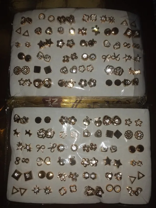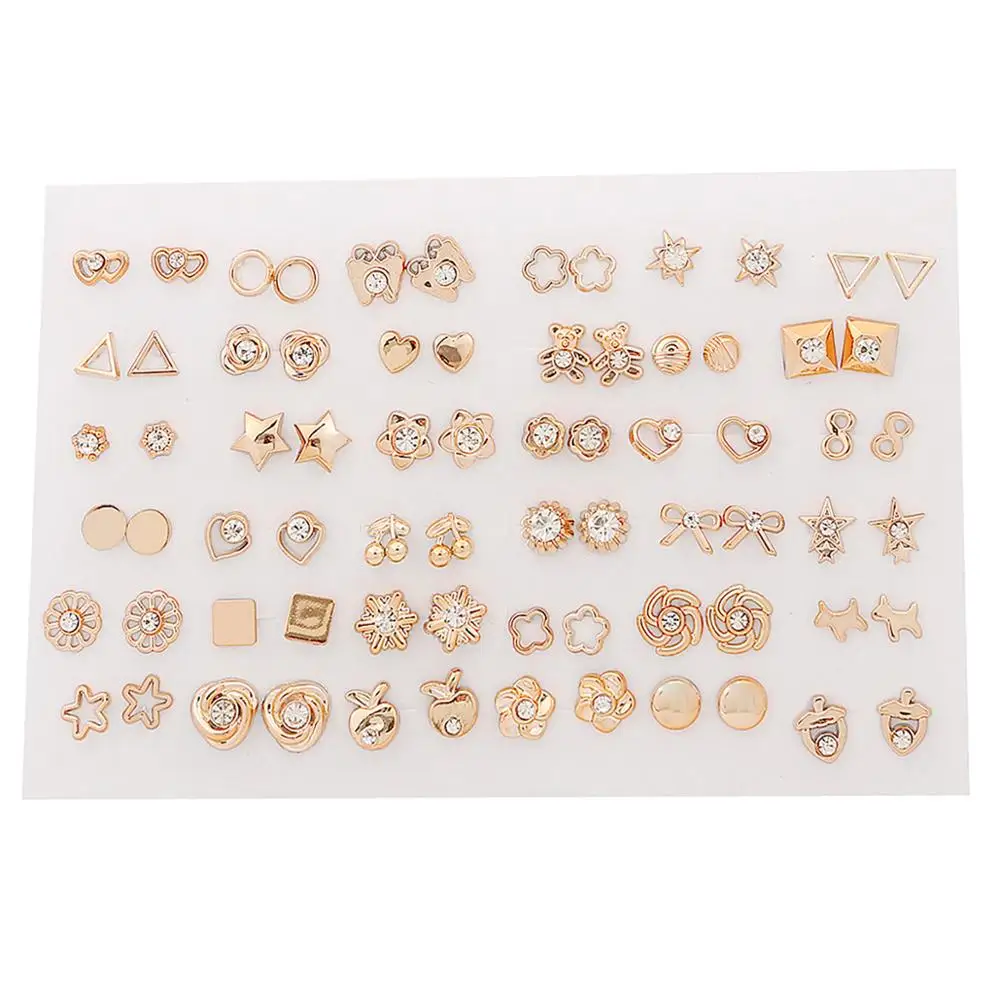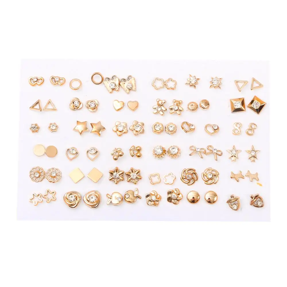 Серьги золотого цвета в смешанном стиле стразы, цветы, геометрические, сердце, звезда, пластиковые гвоздики, драгоценности, 36 парткомпл.