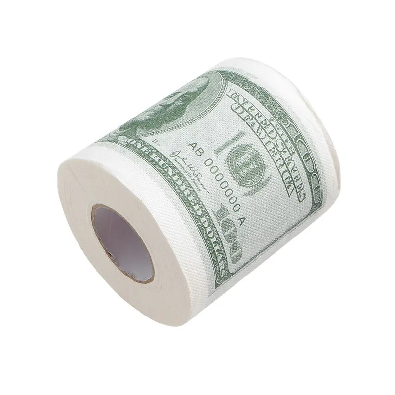 $100 долларов, рулон туалетной бумаги, забавная туалетная бумага, новый подарок