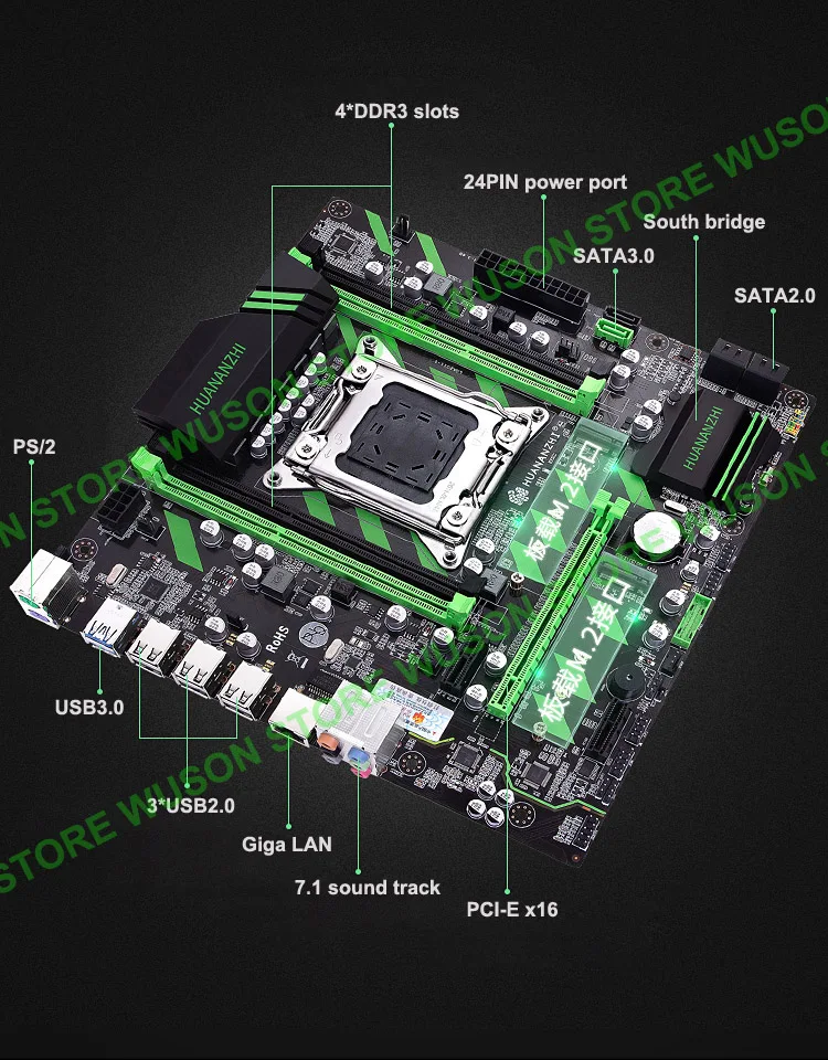 Материнская плата HUANANZHI X79-ZD3 с слотами M.2 NVMe/NGFF SSD + CPU Xeon E5 2680 V2 + 4*8G DDR3 1866 RECC + SATA кабель + металлическая задняя панель + диск драйвера + Руководство пользователя