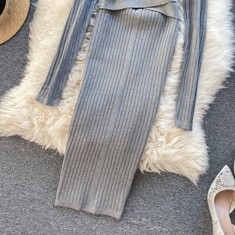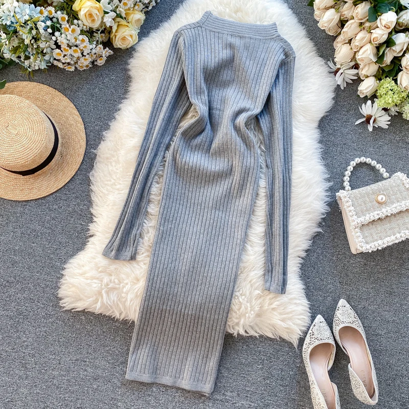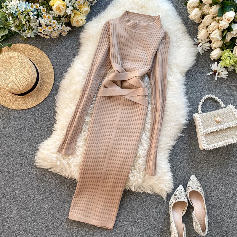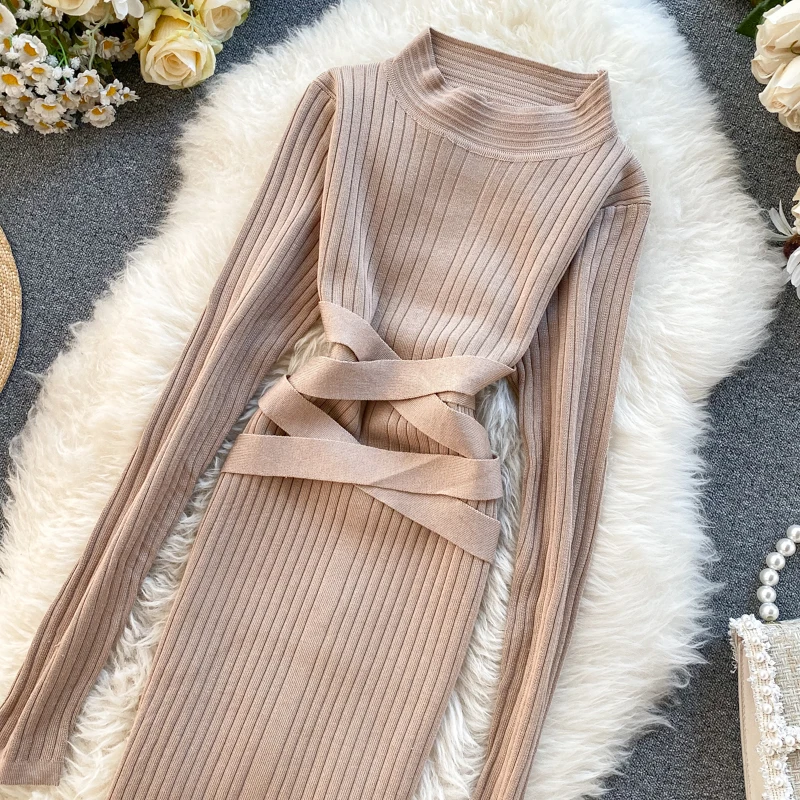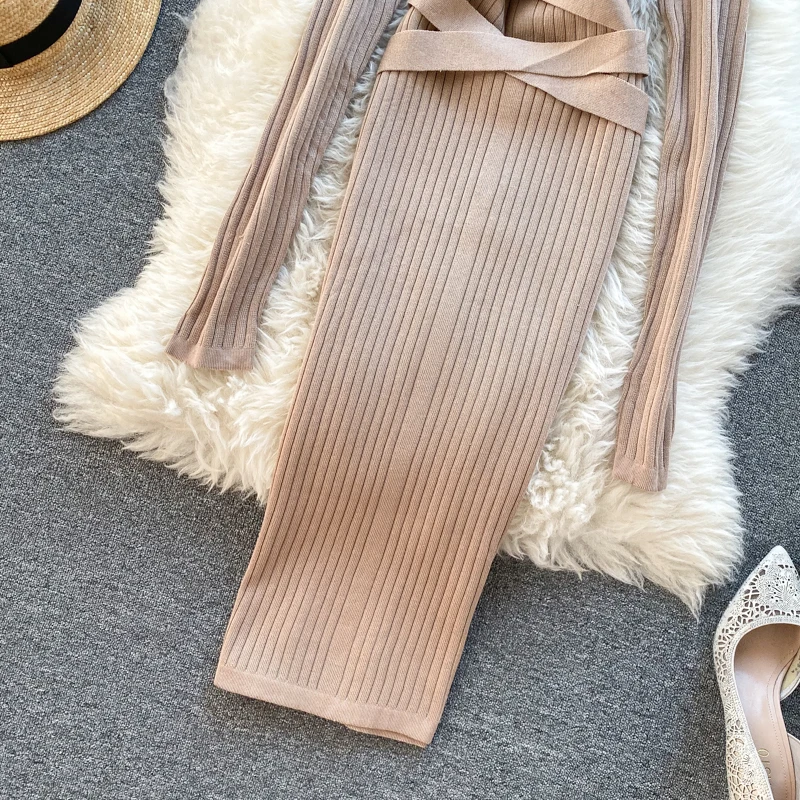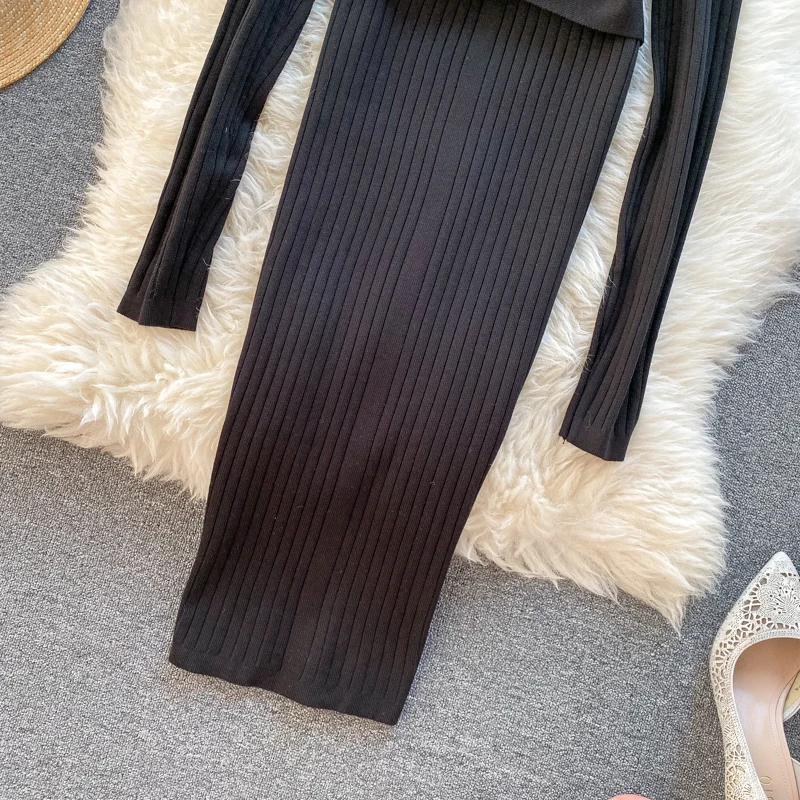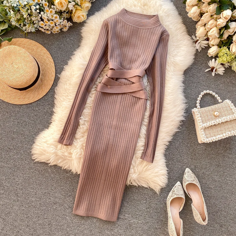 Винтажное облегающее платье-карандаш средней длины, сезон осень-зима 2022, облегающий вязаный свитер, женское Клубное платье до колена для вечеринки