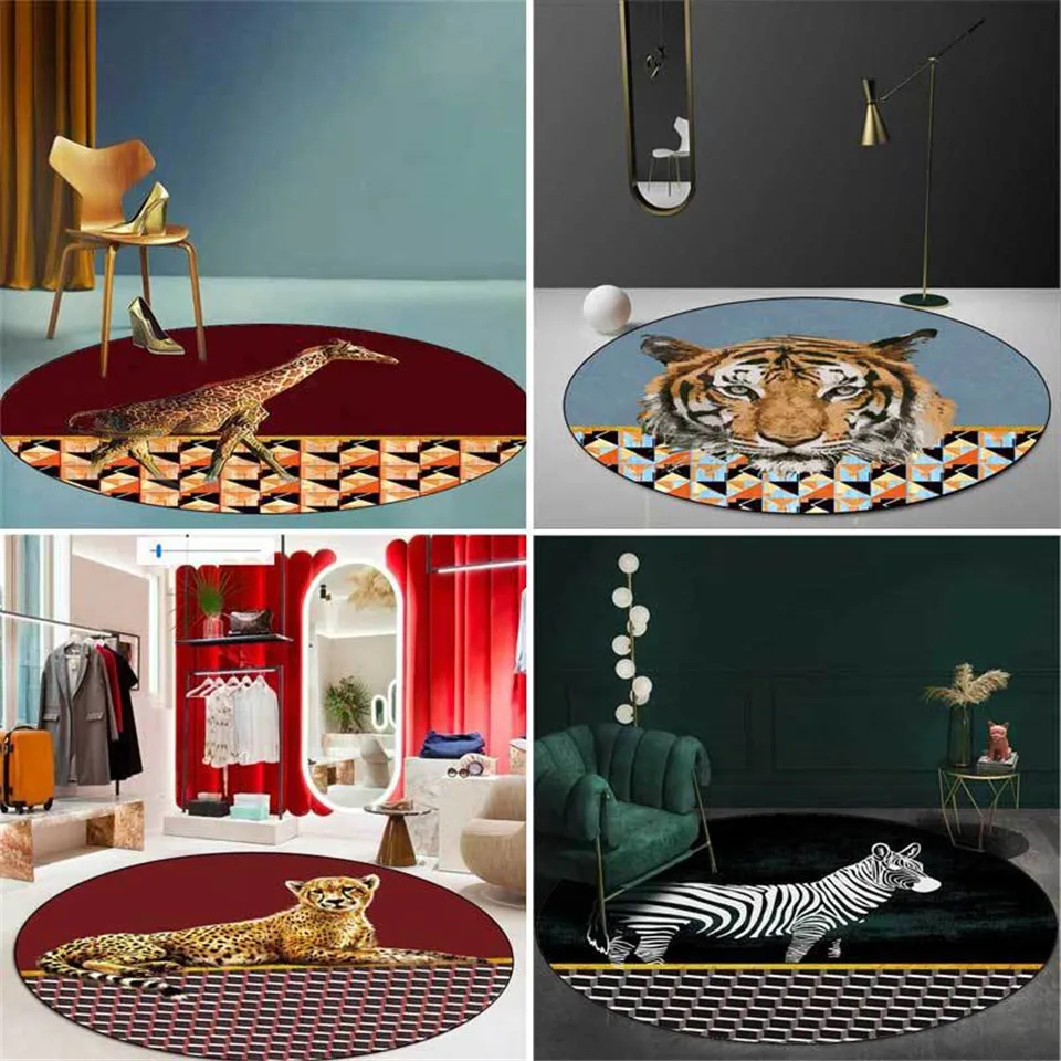 Модный Темно-зеленый ковер Зебра геометрический узор мозаика круглый ковер для гостиной с животным принтом журнальный столик круг