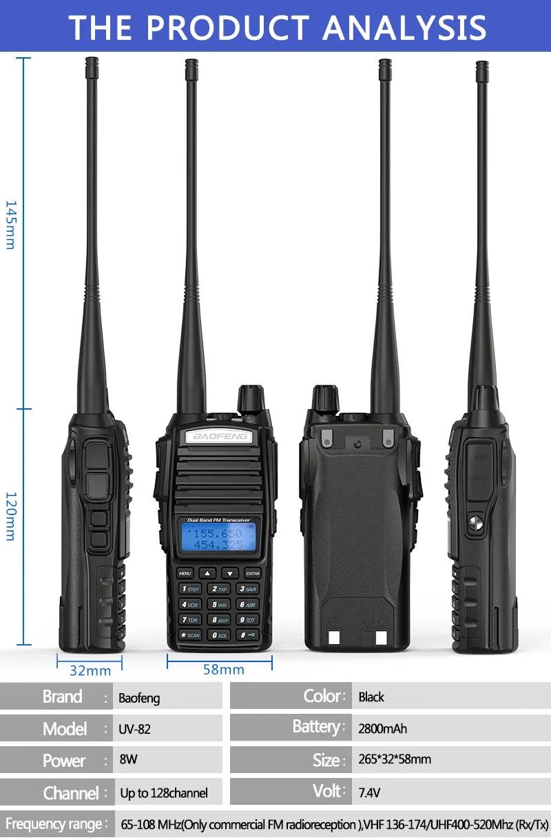 Рация Baofeng UV82, 128 каналов, 10 км, 8 Вт, 2 шт.
