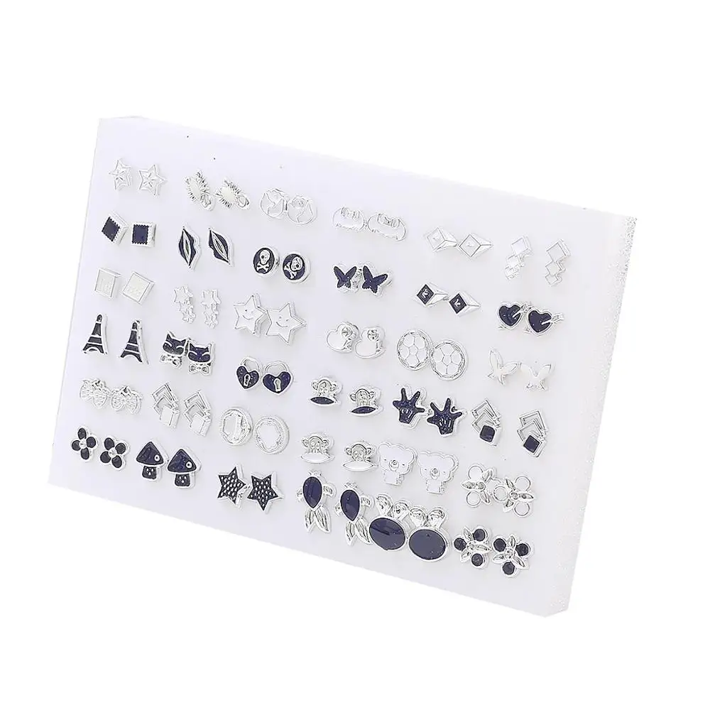 Серьги-гвоздики женские акриловые с эмалью, комплект из 36 партийкомпл., маленькие ювелирные украшения в виде сердечек, звезд, животных, цветов, бантиков