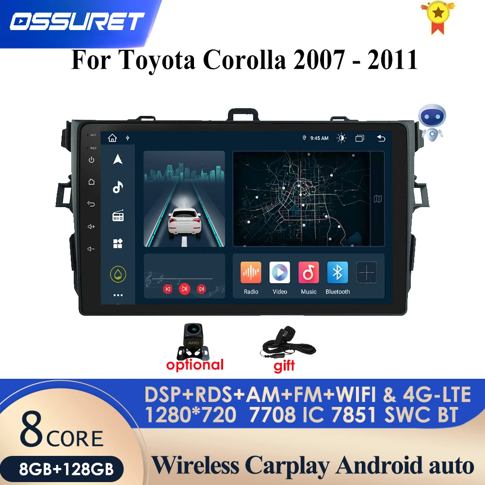 Автомагнитола 2 din, 2 Гб + 32 ГБ, экран 2.5D, Android 10, 4G, сетевой мультимедийный видеоплеер для Toyota Corolla 2007-2011, Wi-Fi, BT, CAM-IN, USB, DTV