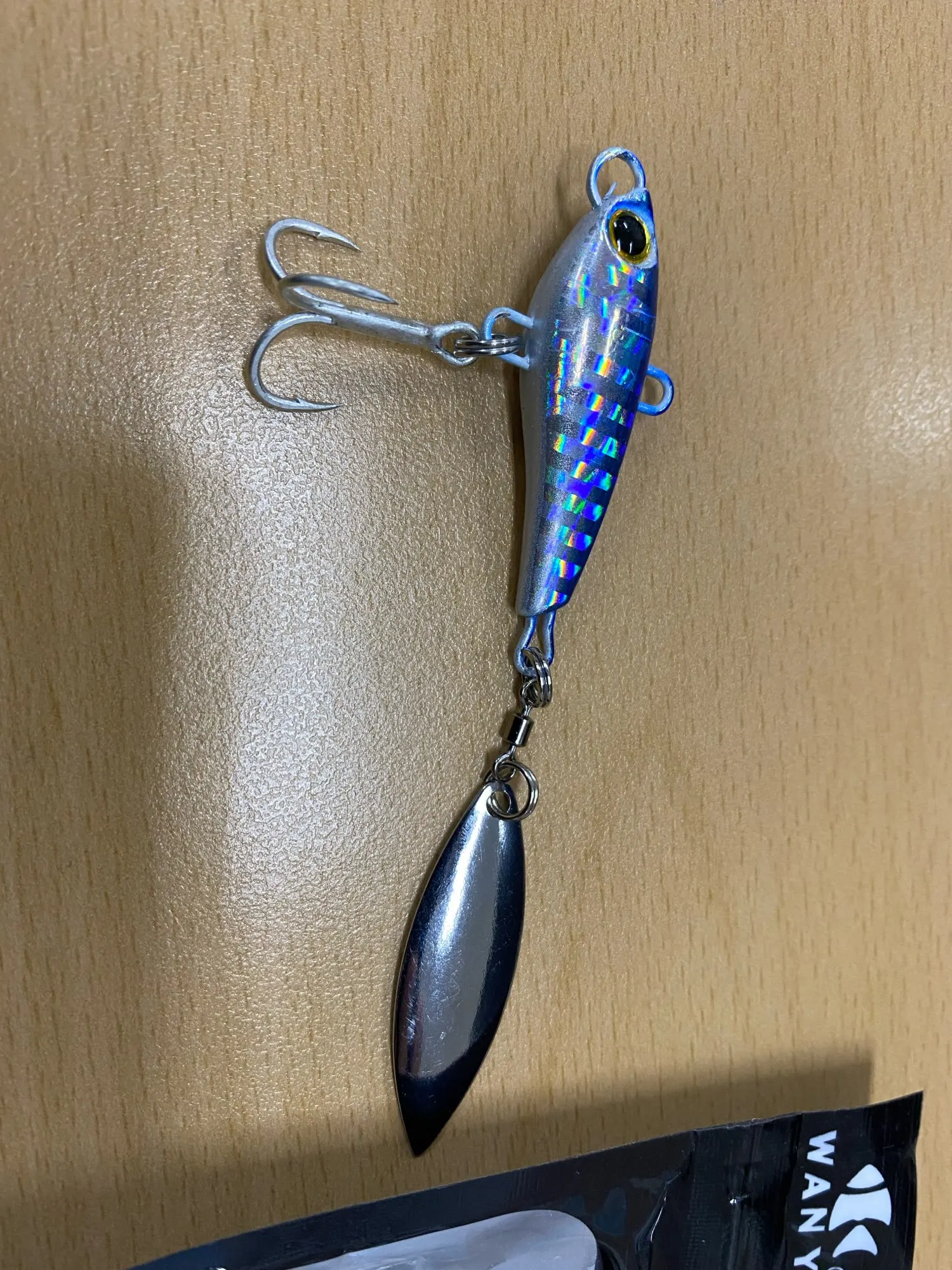 Приманка эта не работает,плывет боком.Пришлось переделать.Поставил другой лепесток и переставил тройник наоборот.С продавцом не общался.