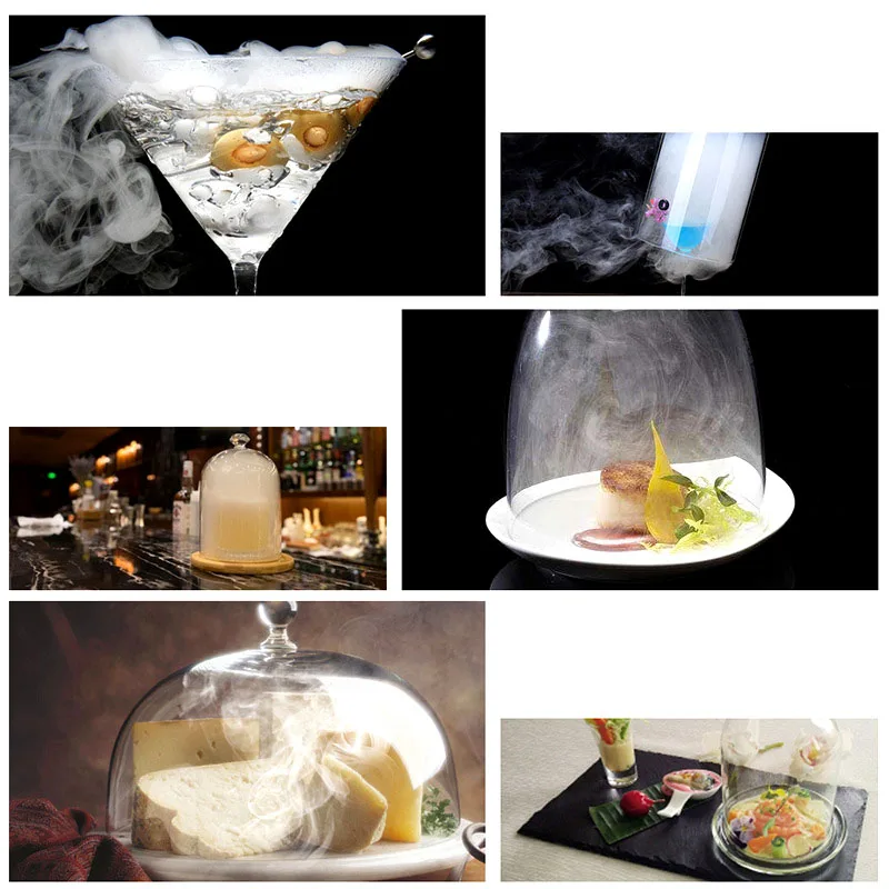 Рыба и морепродукты, молекулярная кухня, коктейли, ореховые закуски (курительная пушка быстро использует все виды опилок, чая, трав, специй, сена, сухоцветов для курения. Добавьте холодный дым и аромат в еду или напитки в течение 3-5 минут)