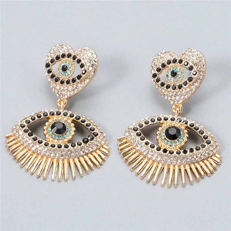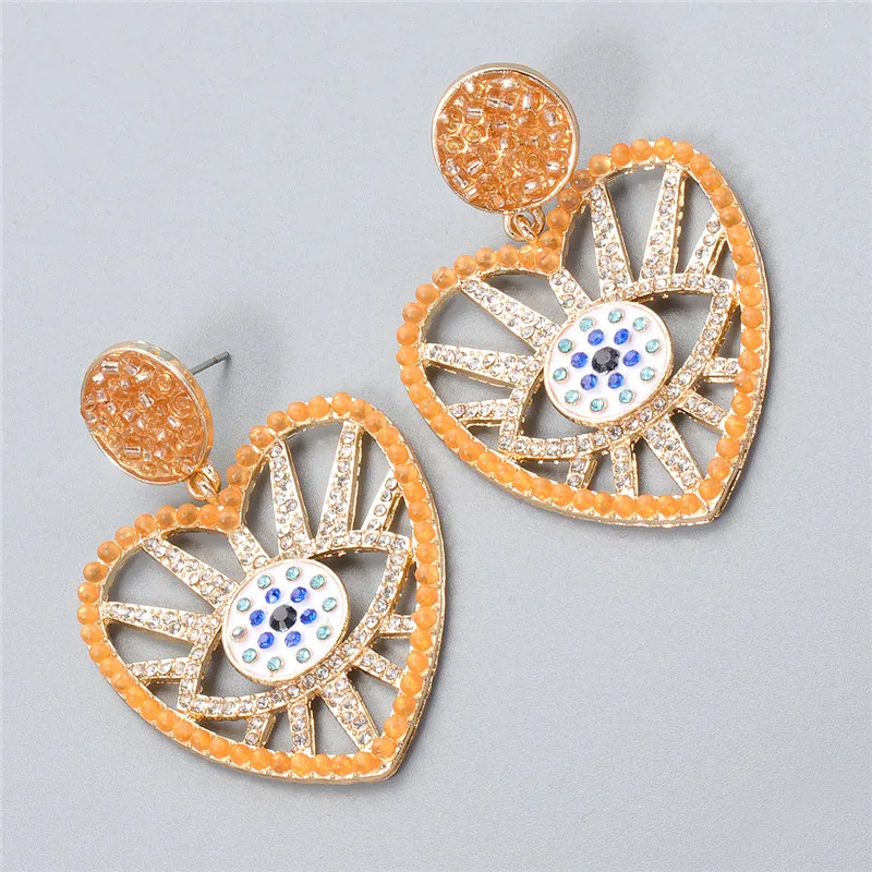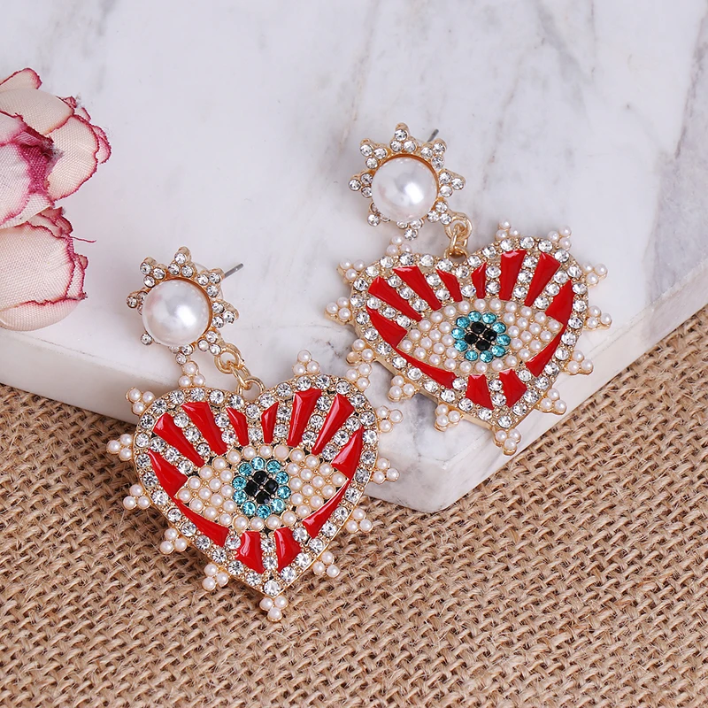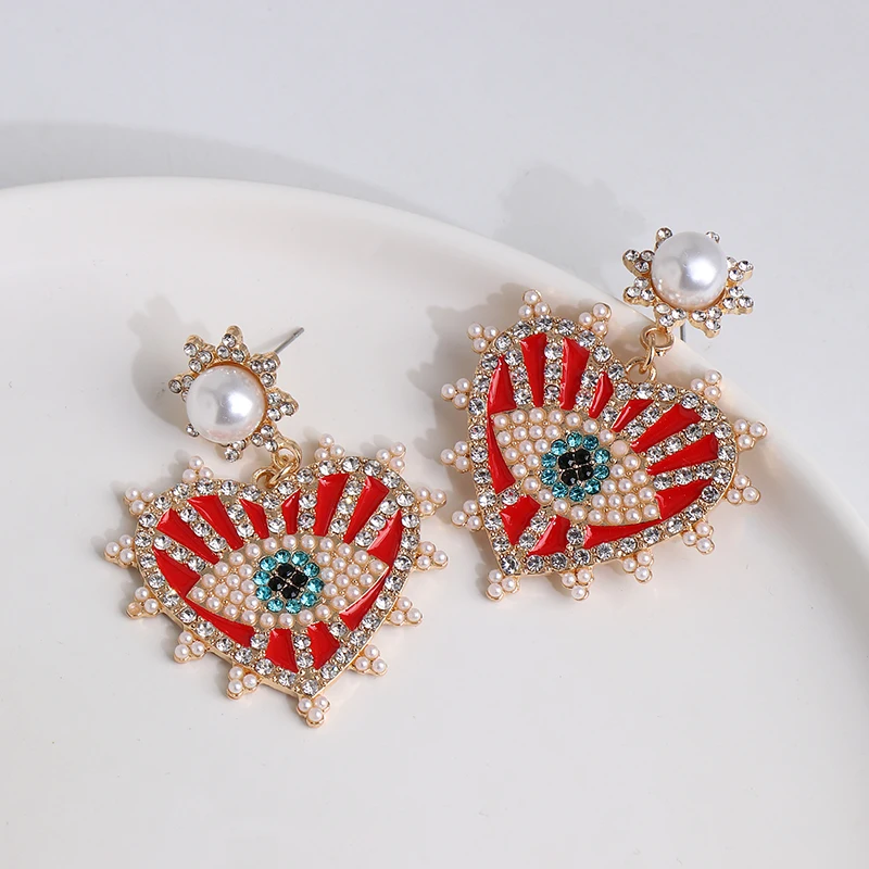 Женские серьги-подвески JUJIA, этнические, в форме сердца, от сглаза, винтажные, с кристаллами, ювелирные изделия для подарка
