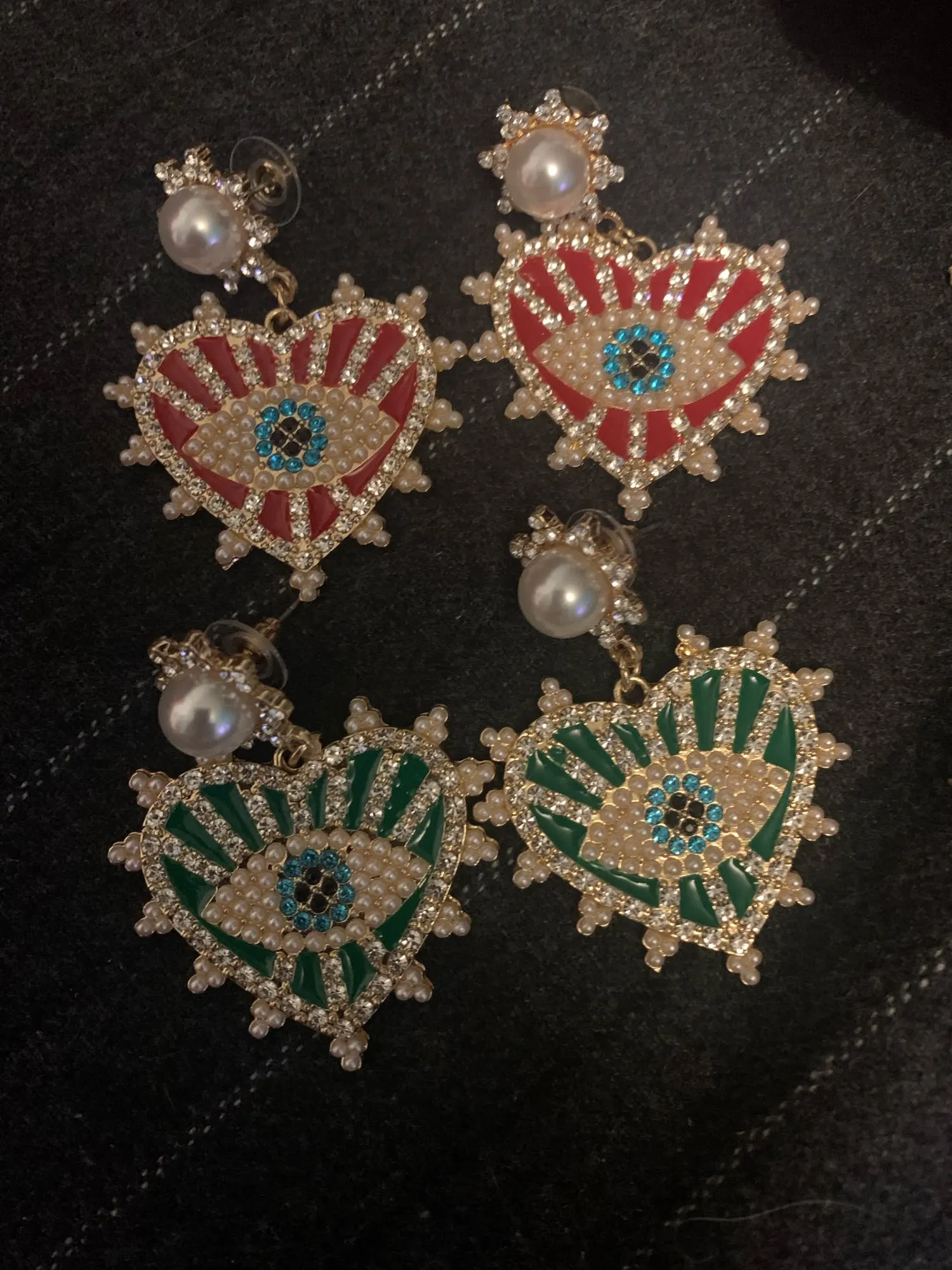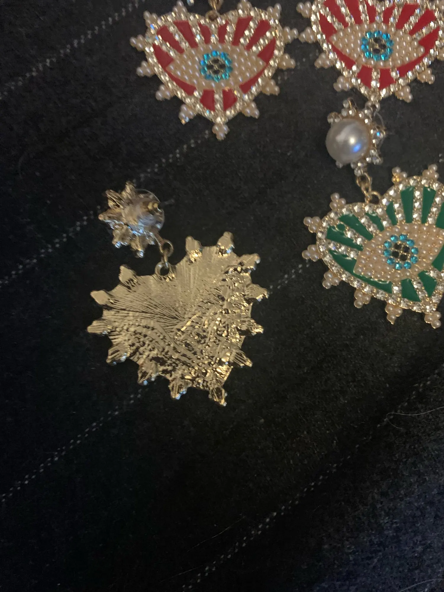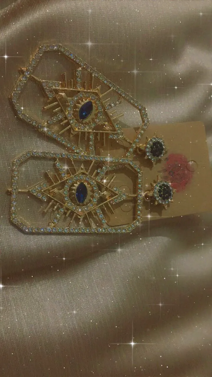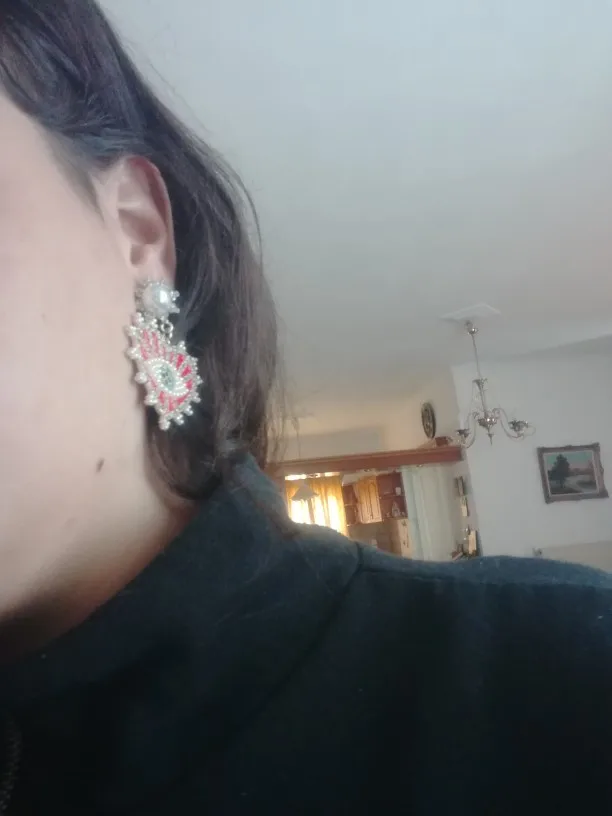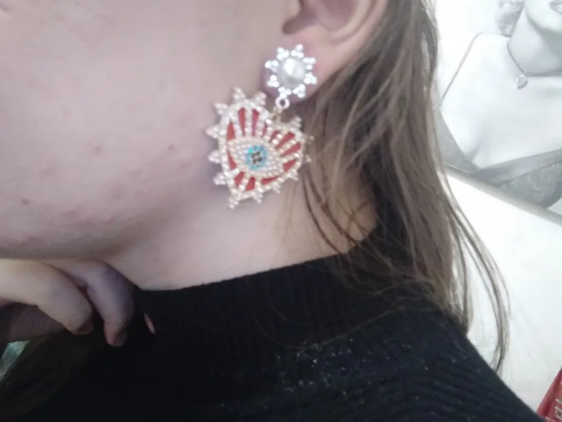 Серьги безумно красивые, выглядят дорого. Все камни на месте, блестят очень круто. Рекомендую