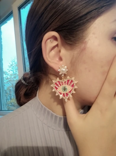 Классные серьги в виде глаз выглядят так же, как на фото, хорошего размера, спасибо
