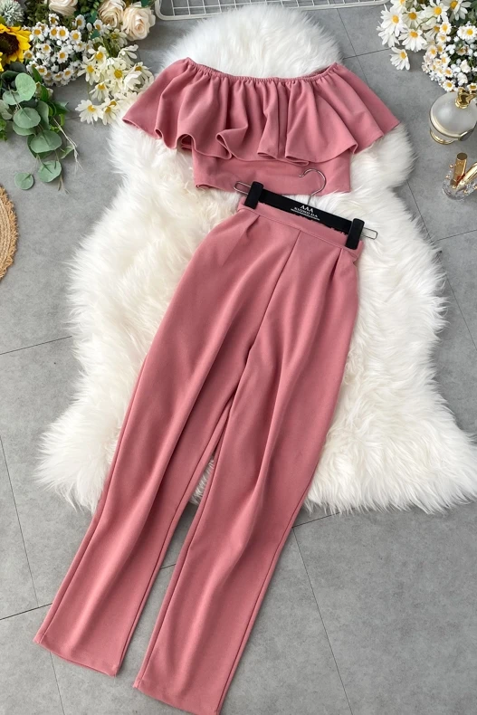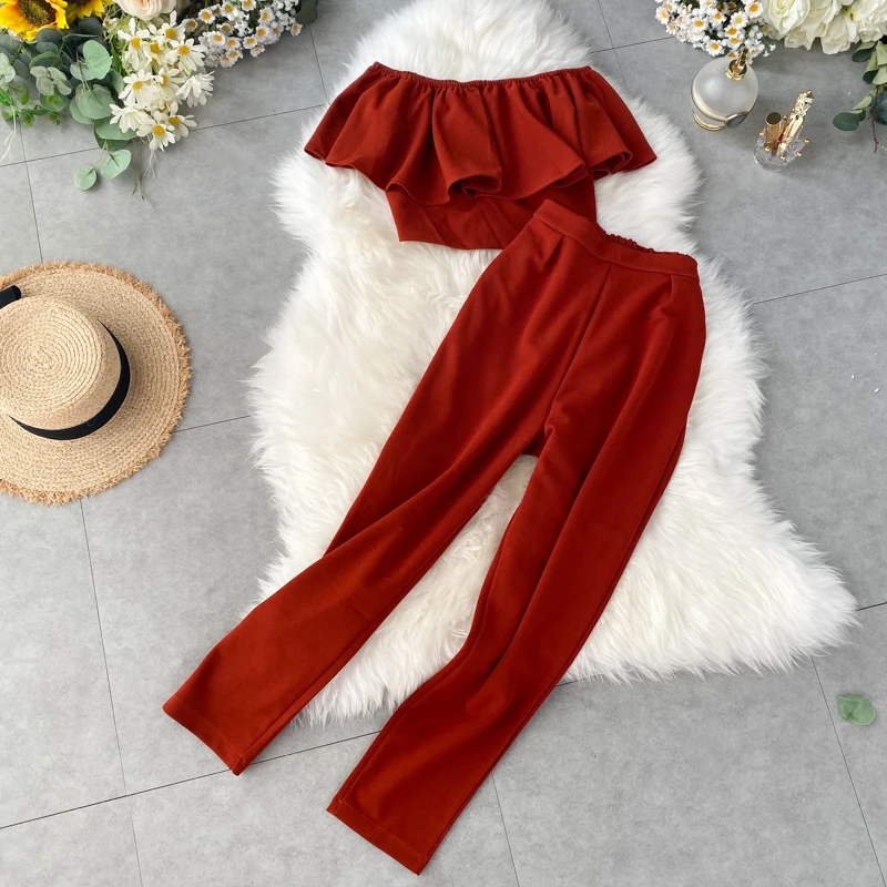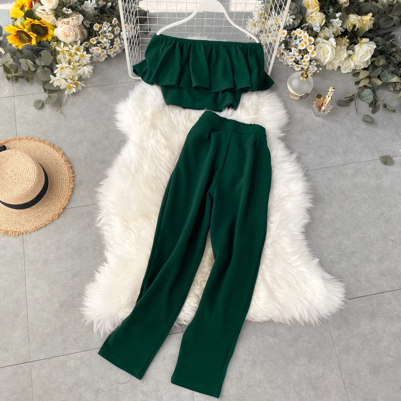 Женский комплект из двух предметов, элегантный винтажный комплект из блузки и узких брюк, лето 2020