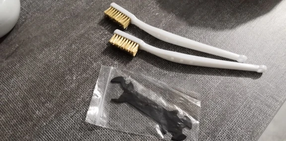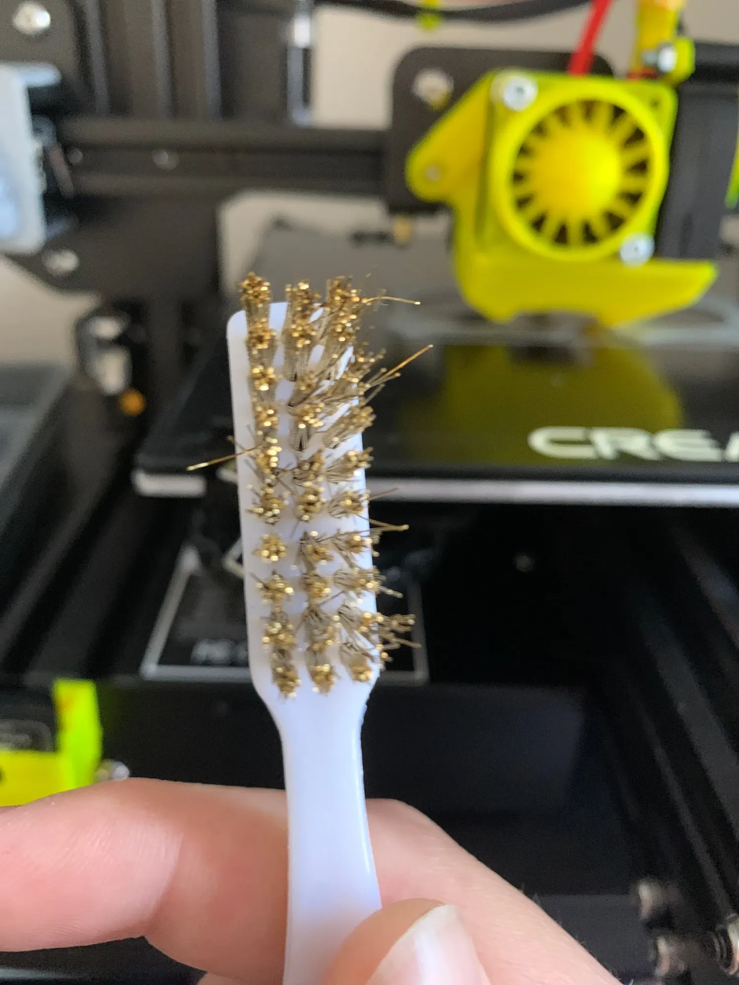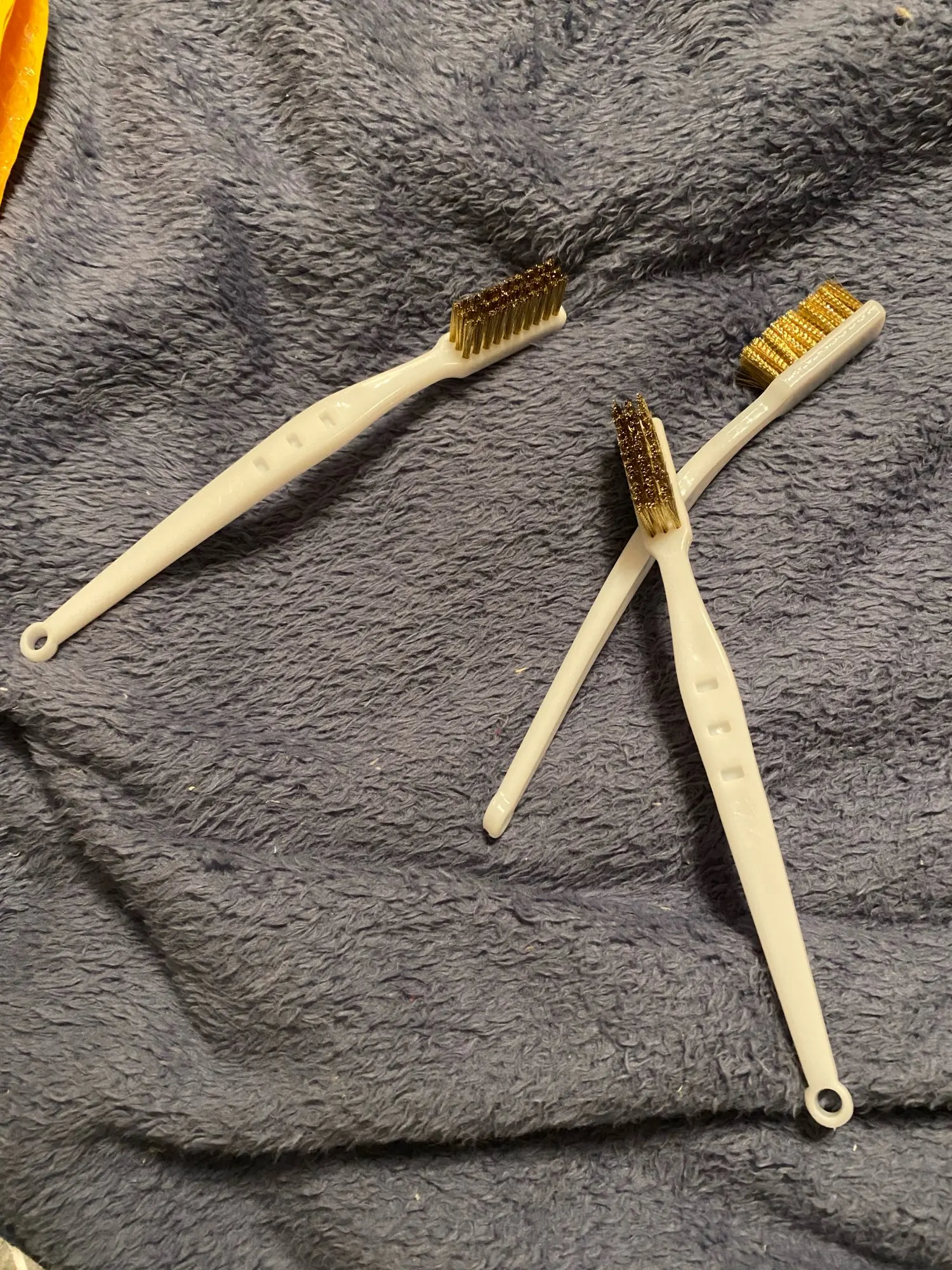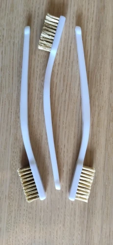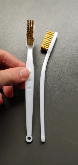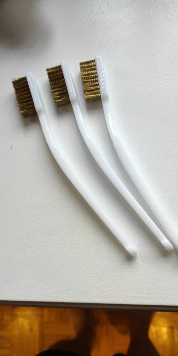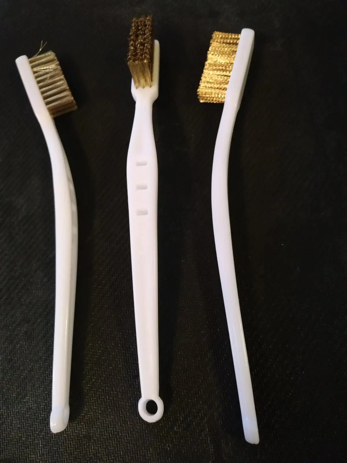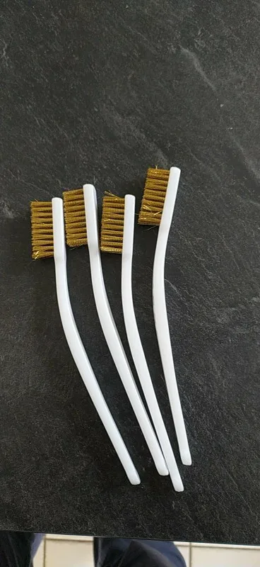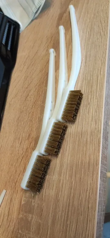 bonne brosse douce en laiton pour nettoyer des buses d'imprimante 3D ou des matériaux de type acier ou bois pour enlever le vernis sans trop abîmer. Deplus le manche est muni d'un anneau pour les accrocher car vendues par 3, parfait comme outil utilisable dans pas mal d'applications avec un peut d'imagination