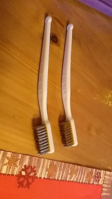 Брал для зачистки латунных изделий (литья) посте шлифовки и обработки. Щетка красивая и аккуратная. Вроде несильно распугивается)