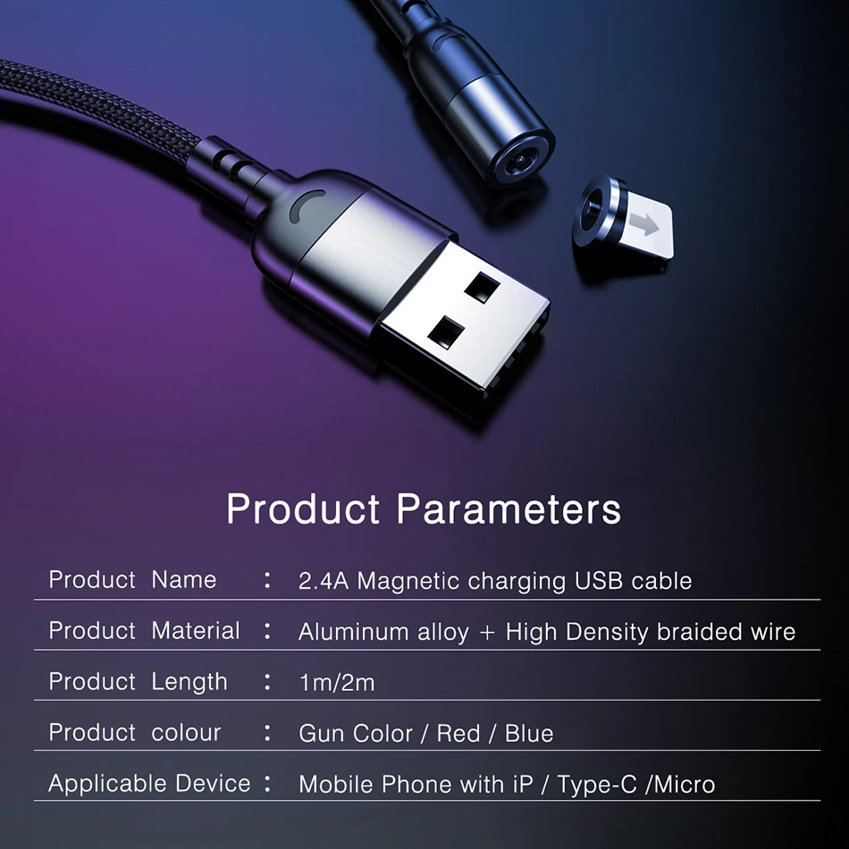 Лидер продаж, магнитный кабель Micro Usb Type-C 2,4 А, Сверхбыстрая Зарядка телефона, Usb C, светодиодная подсветка для iPhone, Xiaomi, Huawei, телефонов на Android, 1 м, 2 м