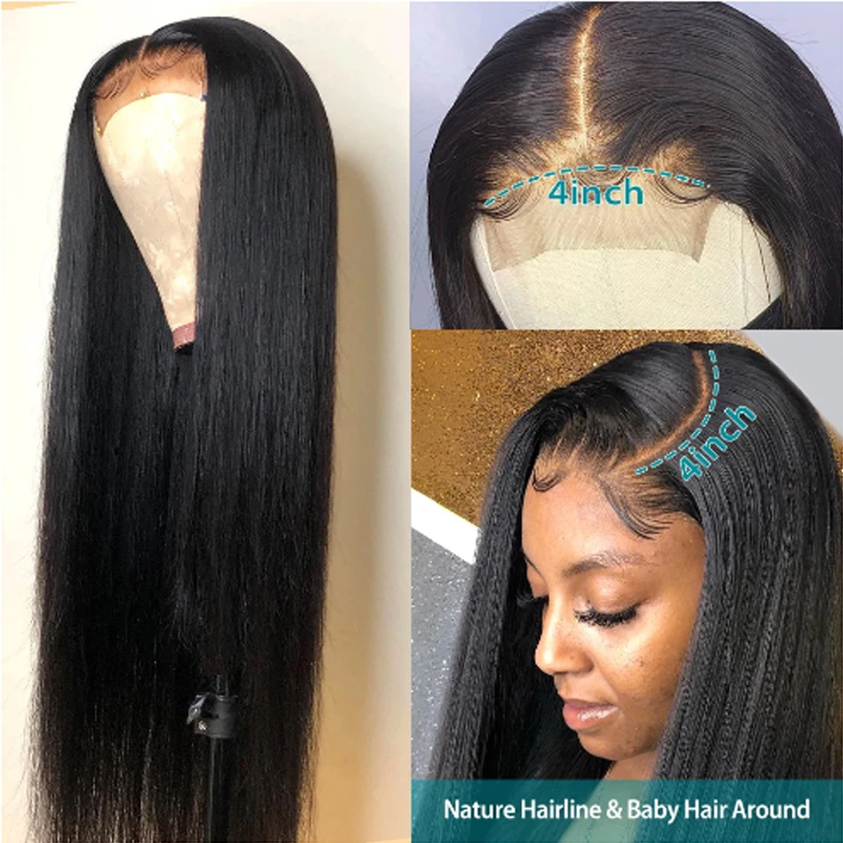 30 32 34 дюймовый парик, человеческие волосы для чернокожих женщин, длинный парик Реми для чернокожих женщин, 4x4, прямой парик на шнурке, предварительно выщипанный натуральный